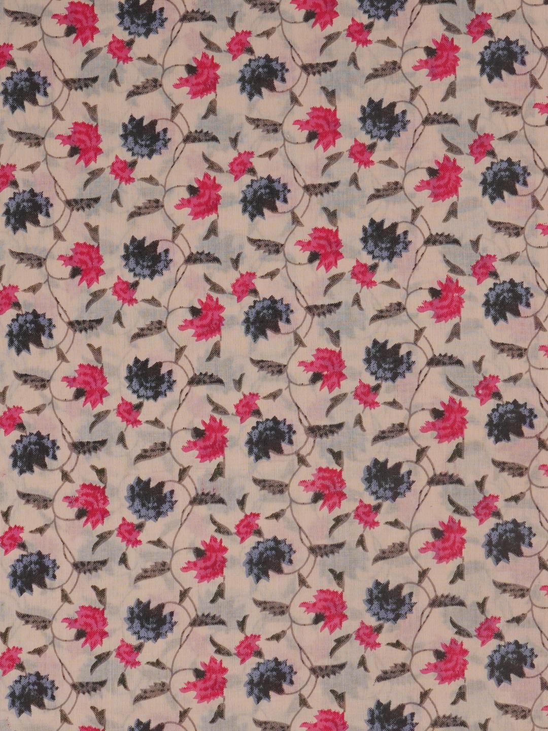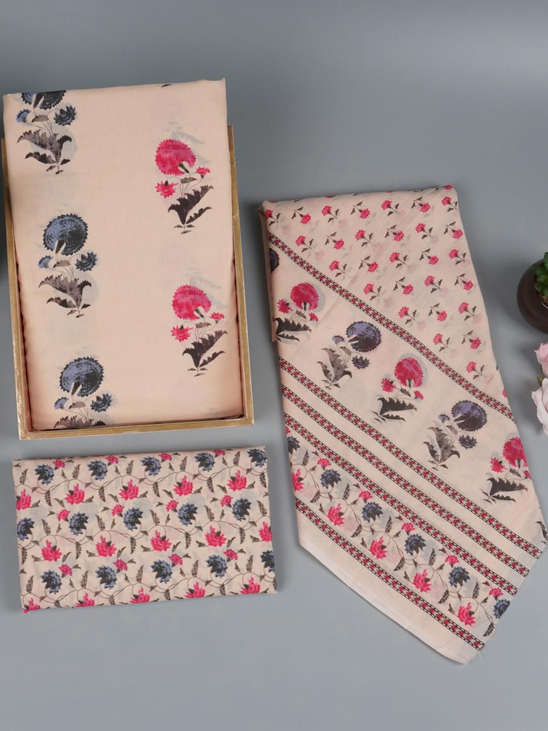 Kwatchi Women Cream With Floral Printed Pure Cotton Unstitched Dress Material