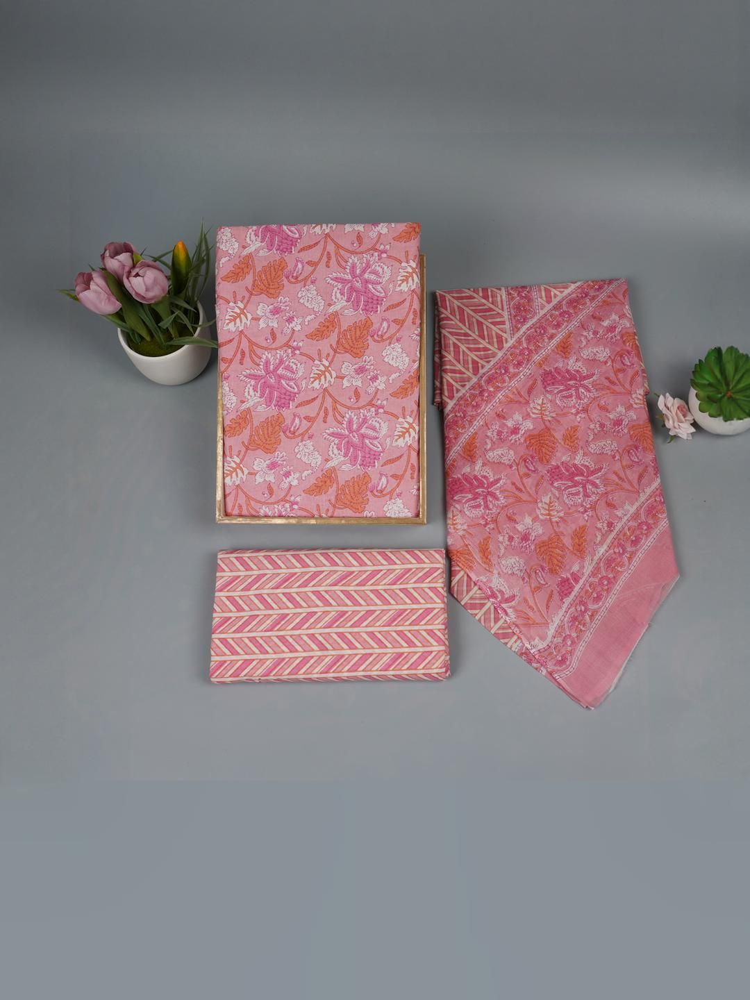 Kwatchi Women Pink Printed Pure Cotton Unstitched Dress Material