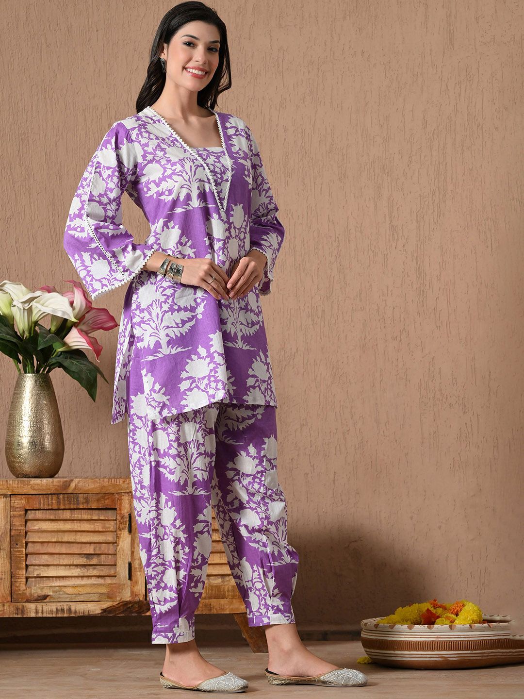 Buy this stylish Laado - Pamper Yourself Floral Printed Square Neck Pure Cotton A-line Kurta With Salwar at Marincart Nepal. This product offers great quality and value. Perfect for those looking for the latest trends in fashion. Get yours now at unbeatable prices.