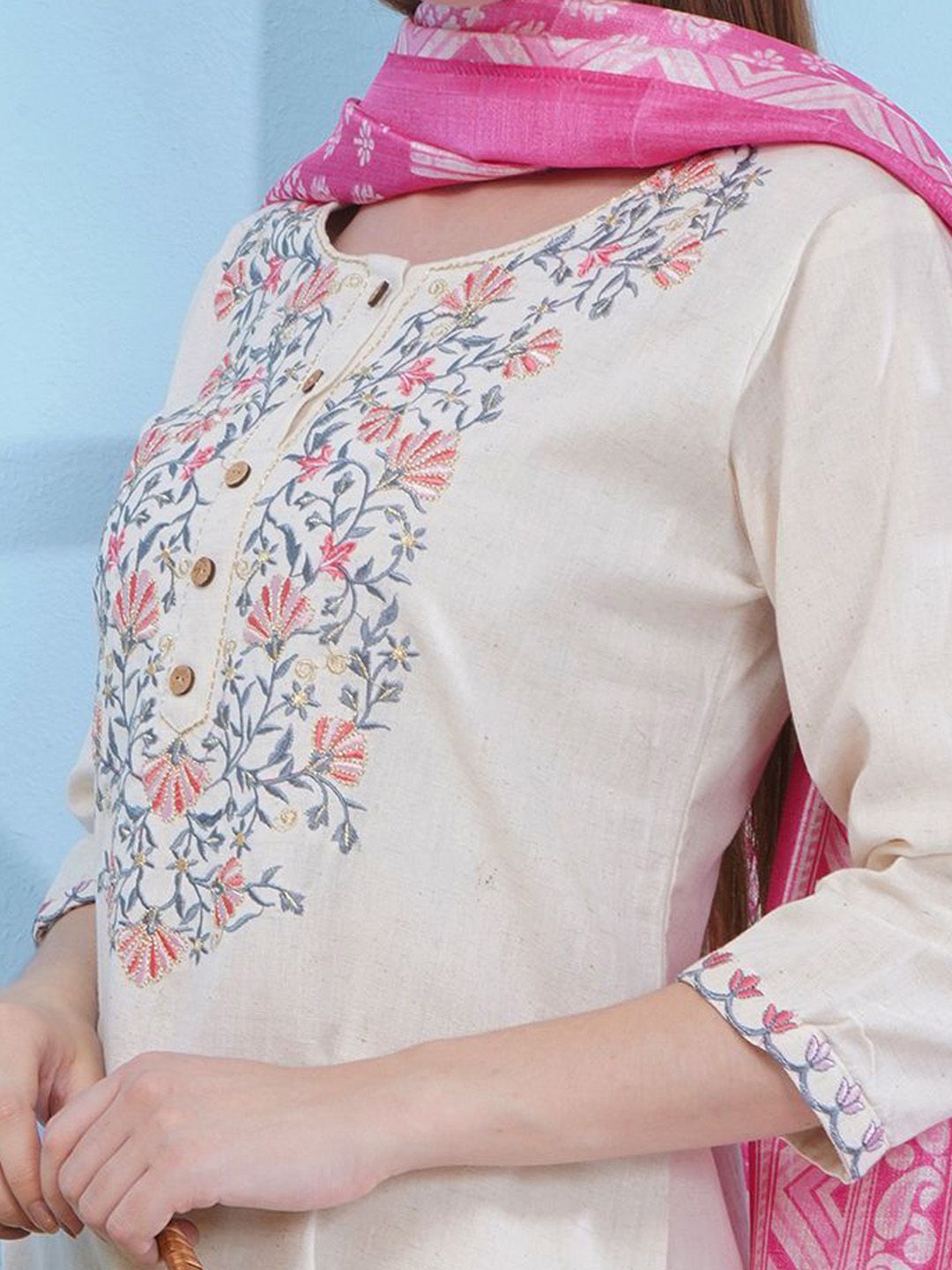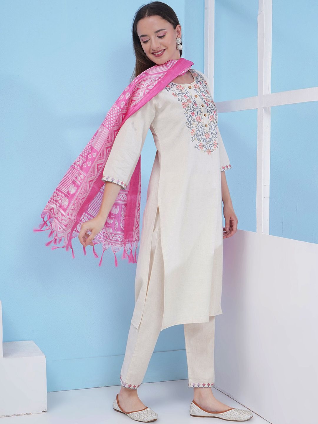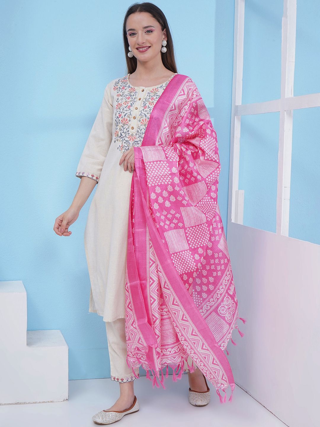 LABEL KASHI Women Floral Printed Cotton Kurta with Trousers & Dupatta