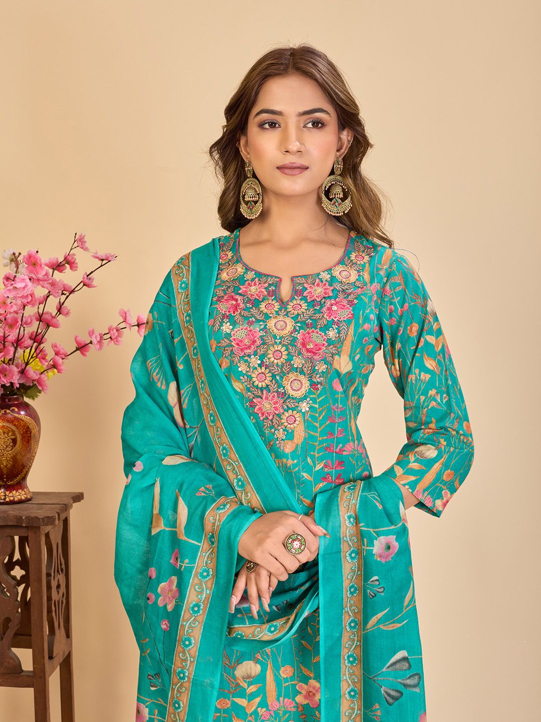 Buy this stylish Larqi Floral Embroidered V-Neck Patchwork Pure Cotton Kurta With Trousers & Dupatta at Marincart Nepal. This product offers great quality and value. Perfect for those looking for the latest trends in fashion. Get yours now at unbeatable prices.