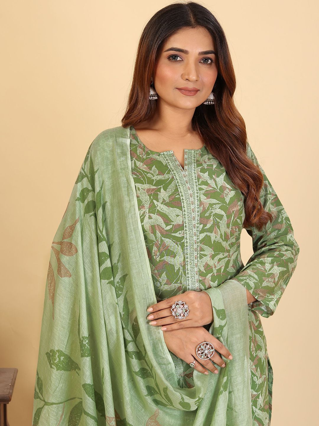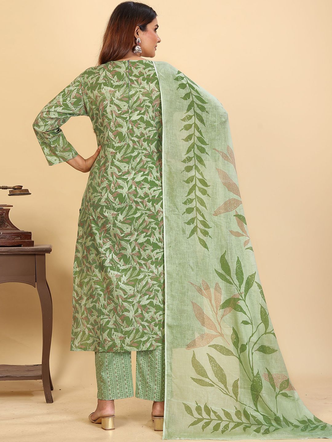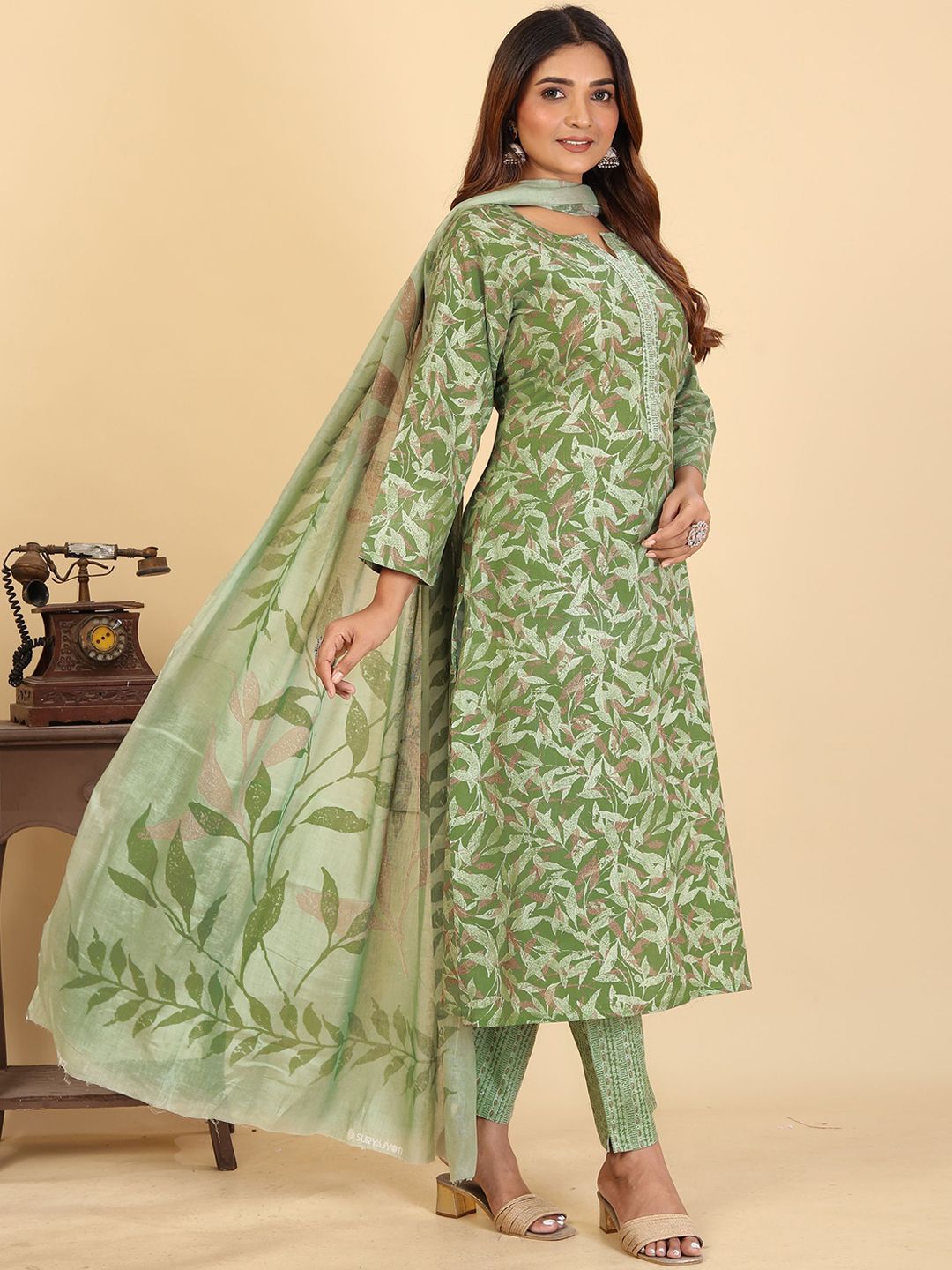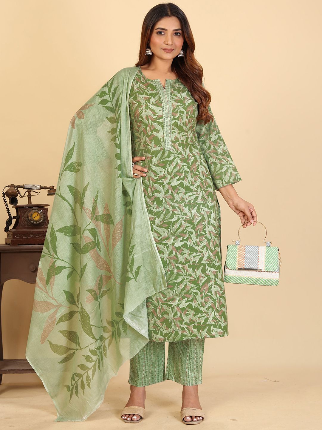 Larqi Floral Printed Notch Neck Pure Cotton Straight Kurta & Trousers With Dupatta