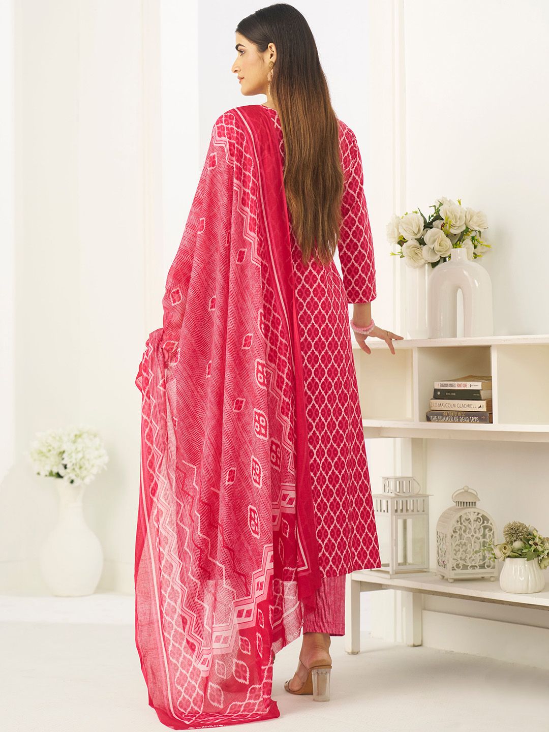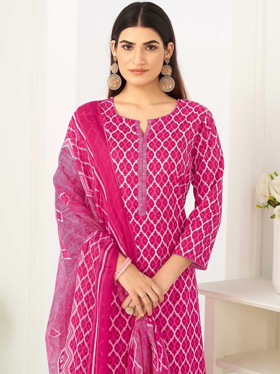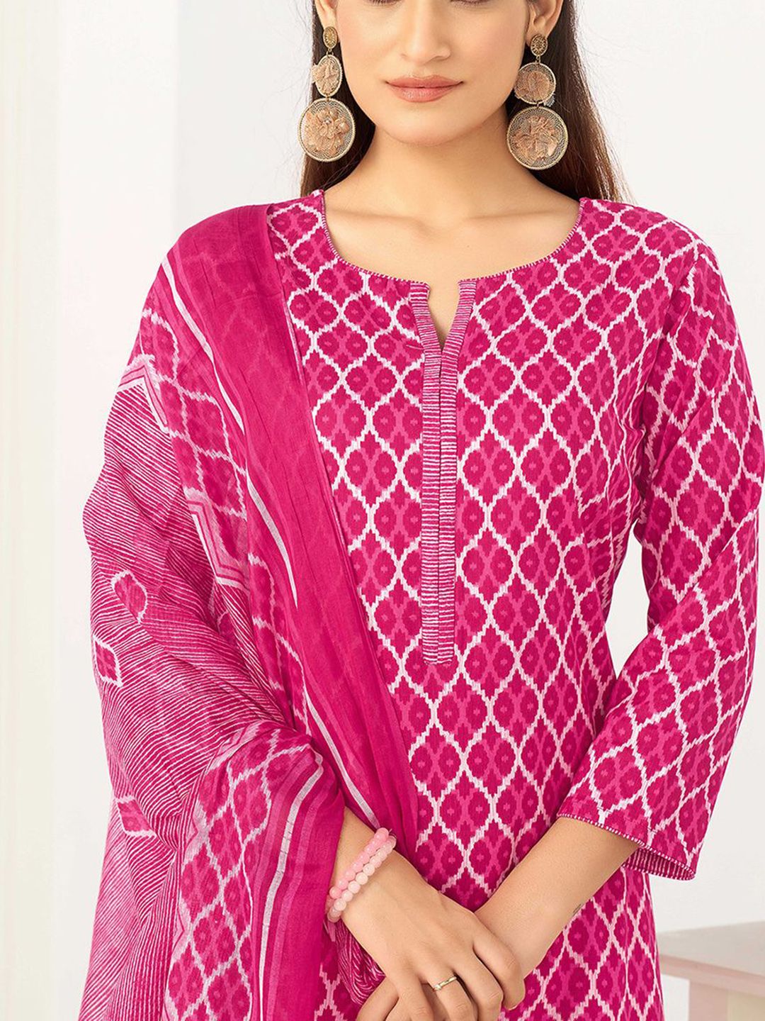 Larqi Floral Printed Notch Pure Cotton Kurta with Trousers & Dupatta