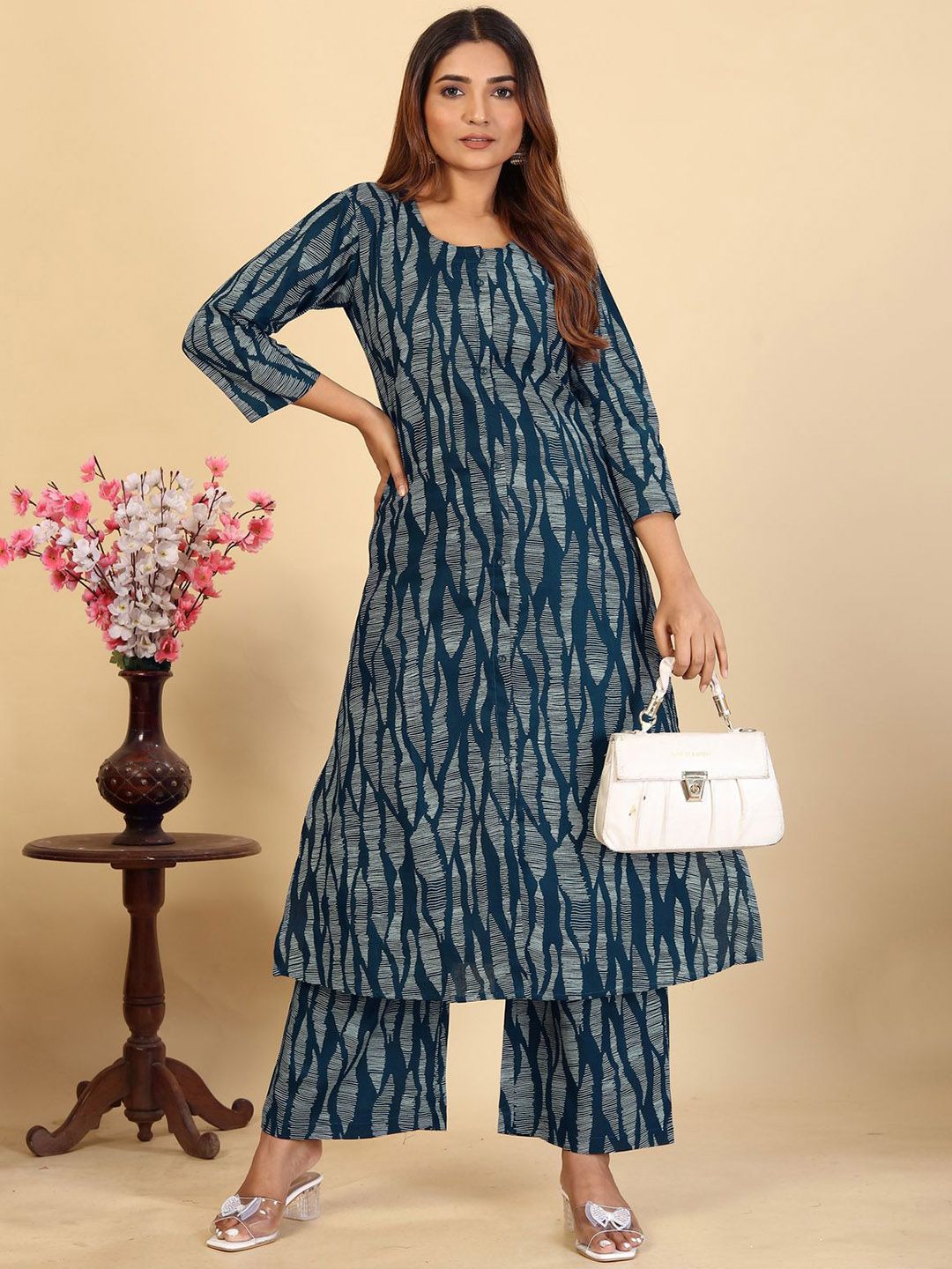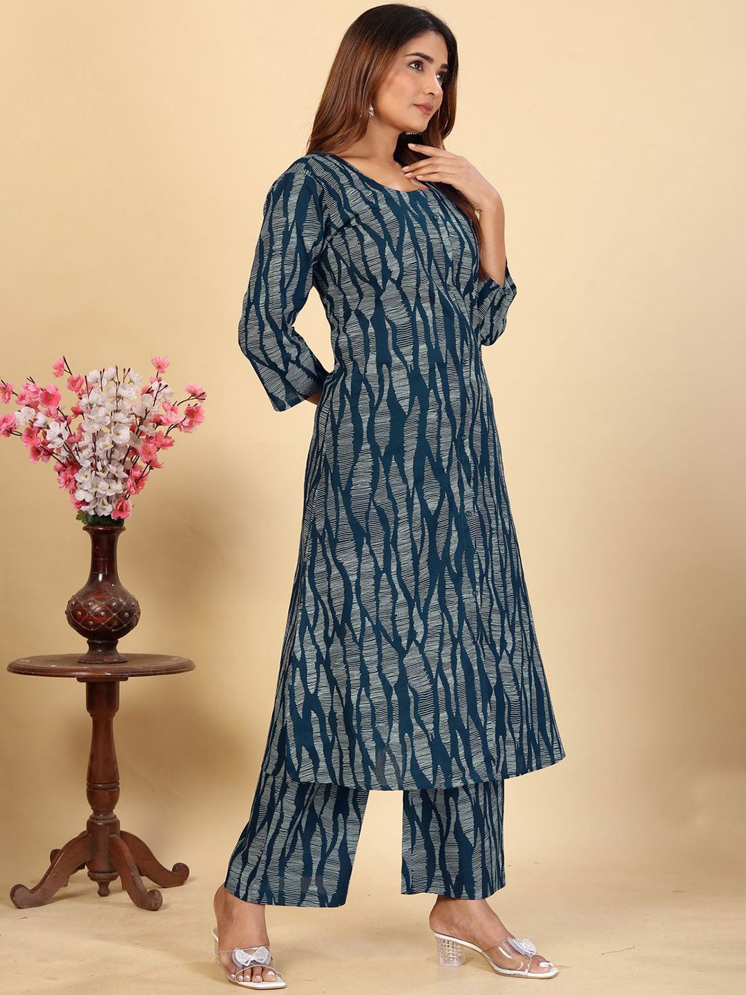 Larqi Women Abstract Printed Regular Pure Cotton Kurta with Trousers