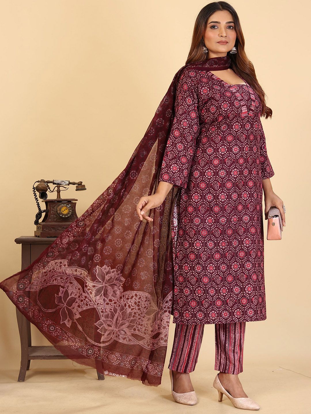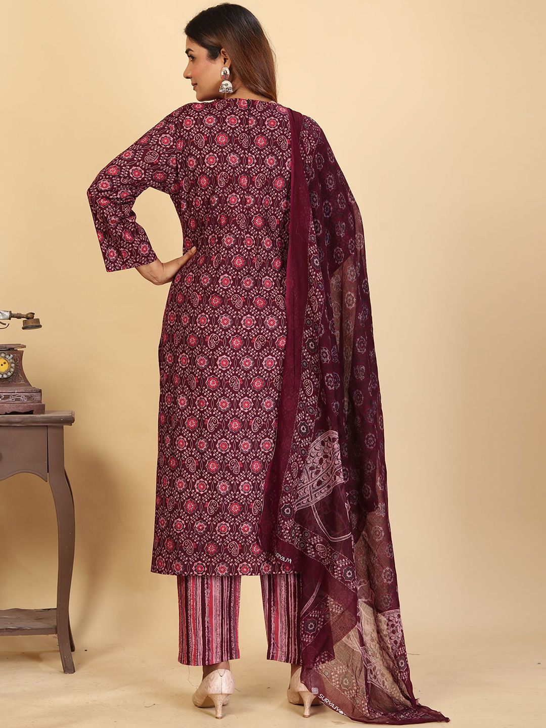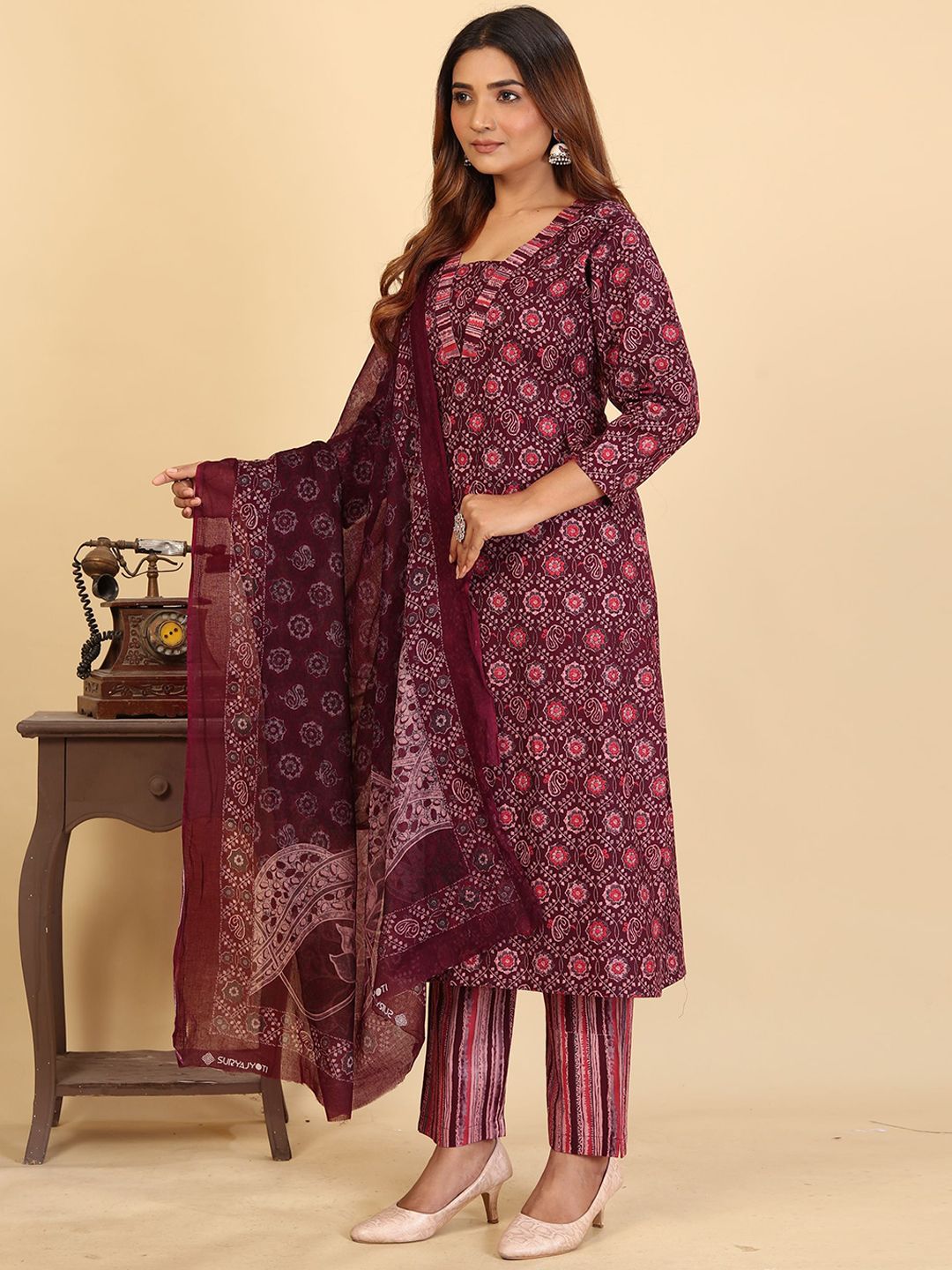 Larqi Women Ethnic Motifs Printed Pure Cotton Kurta with Trousers & Dupatta