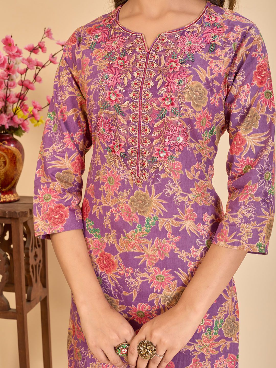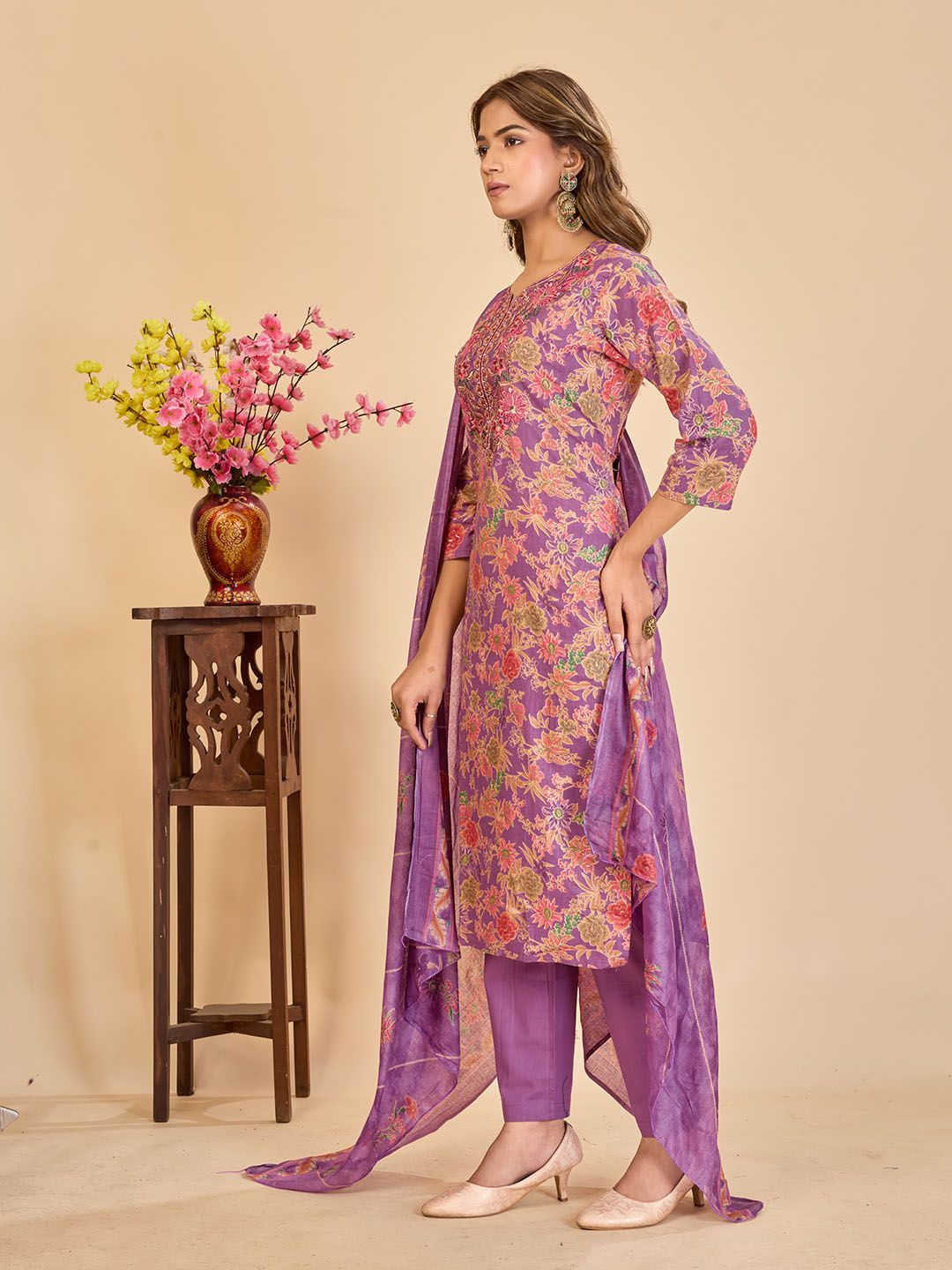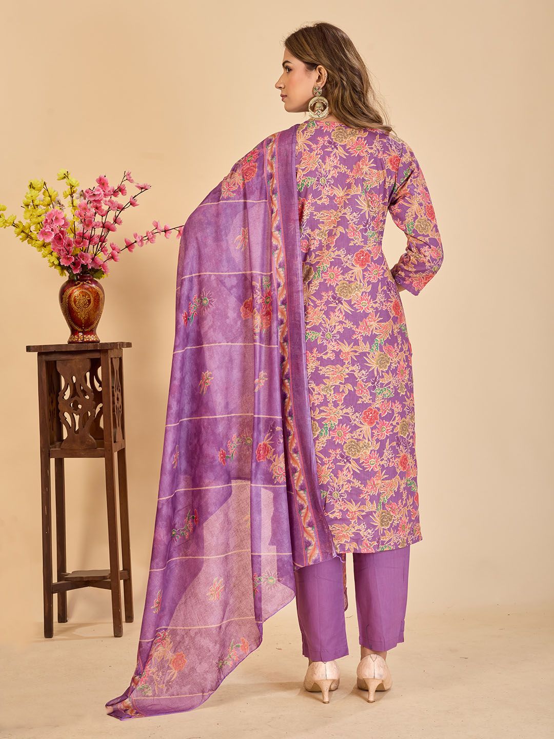Larqi Women Floral Printed Pure Cotton Kurta with Trousers & Dupatta