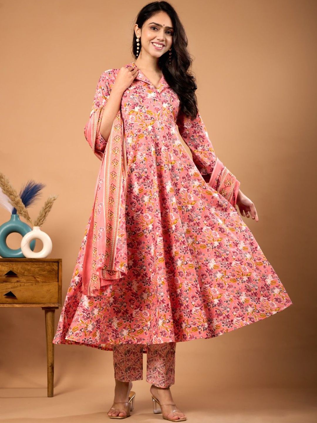 Buy this stylish Le Mec Floral Printed Shirt Collar A-Line Pure Cotton Kurta With Trousers & Dupatta at Marincart Nepal. This product offers great quality and value. Perfect for those looking for the latest trends in fashion. Get yours now at unbeatable prices.
