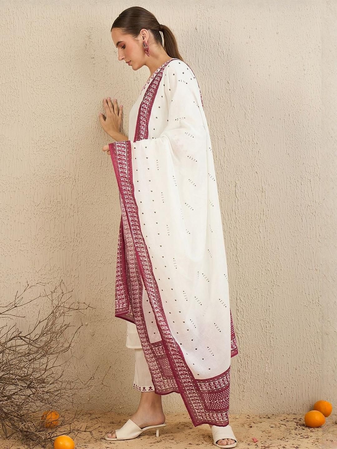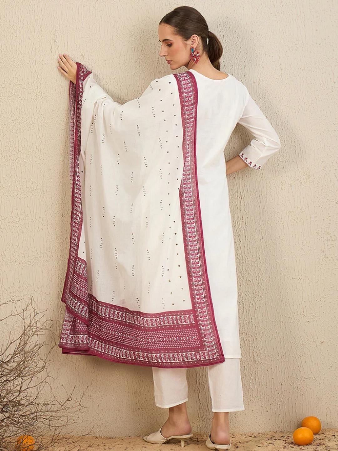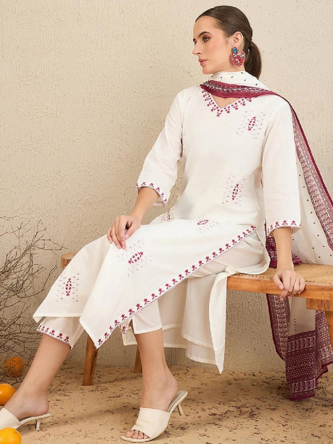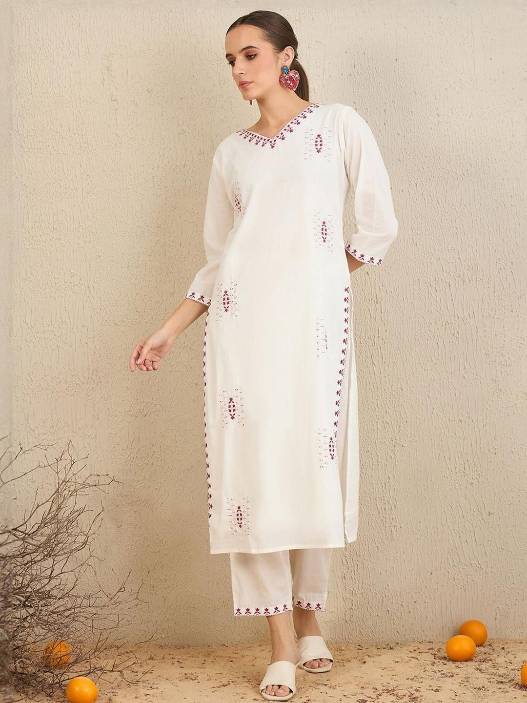 Lerkiza Women Maroon Cotton Blend Embroidered Kurta Sets