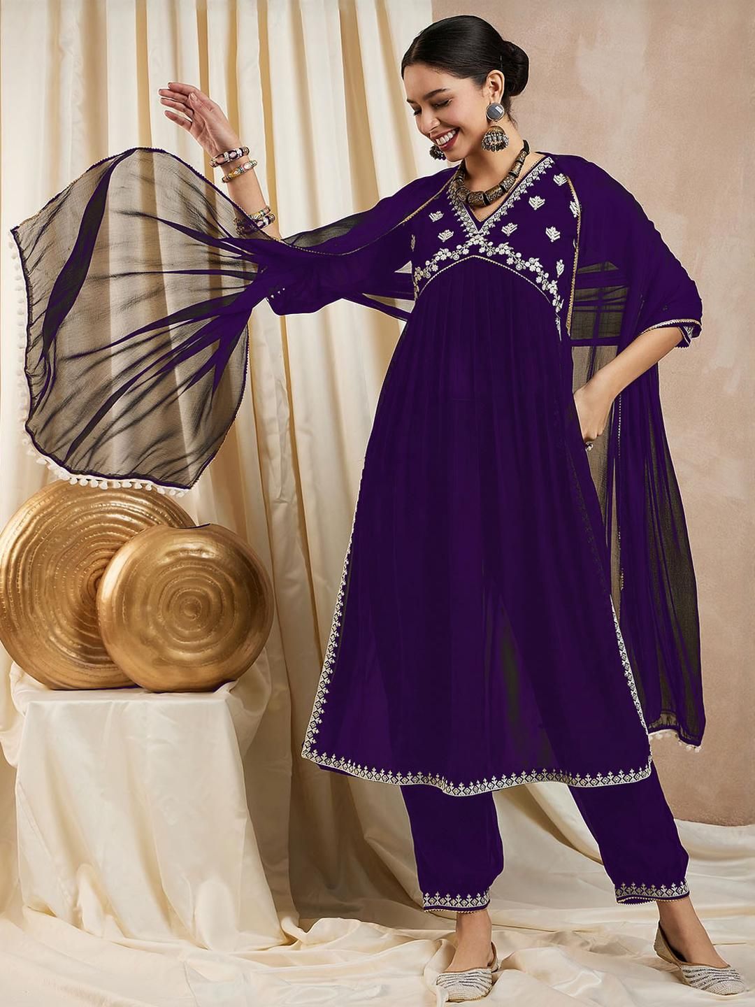 Lerkiza Women Purple Kurta Sets