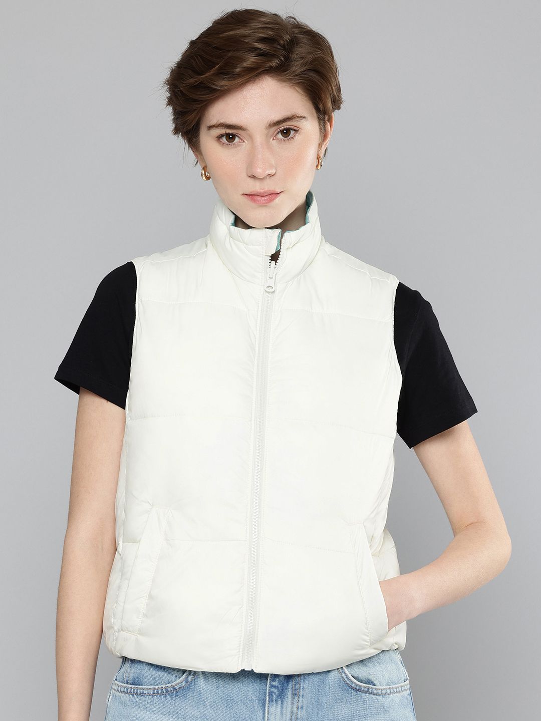 Levis Mock Collar Sleeveless Reversible Puffer Jacket