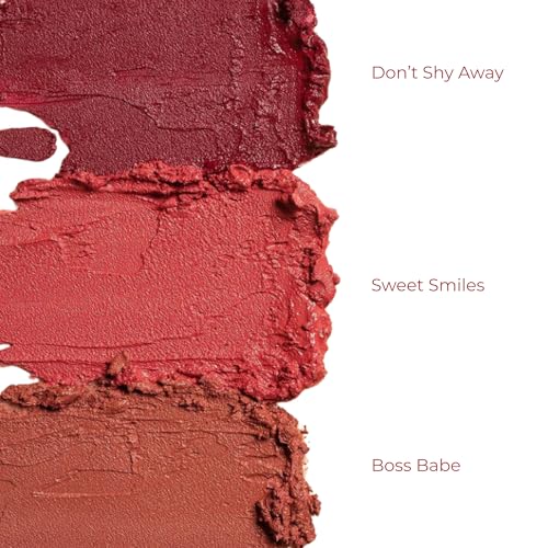 1. Weightless & Lightweight – Boss Babe is an airy, weightless formula which blends and provides effortless sun-kissed flush of color to your cheeks and lips. Multi-Use Versatility: Perfectly enhances lips, cheeks, and eyelids, offering a cohesive and radiant look with a single application. 2. Nourishing Ingredients -Infused with Grapeseed Oil, Shea Butter, Vitamin E and Coconut oil keeps your skin soft and supple. Effortless Blendability: Glides on smoothly and integrates seamlessly, providing a natural, dewy finish that endures throughout the day. 3. Non-Clogging - The formula does not clog your pores. Radiant Infusion: Provides a sophisticated flush of color that adds a natural, youthful glow to enhance your overall complexion. 4. Silky Texture - Provides dewy finish. Glides on smoothly with silk texture. Durable Finish: Provides lasting coverage and vivid color, maintaining its integrity throughout the day without fading or creasing. 5. Don’t Shy Away Lip & Cheek Tint is 100% Vegan, Cruelty Free, Paraben Free, Sulphate Free, Irritation Free and No Harmful Pigments. Refined Craftsmanship: Combines timeless beauty principles with innovative formulation for an exquisite, multi-purpose essential that elevates your beauty routine.