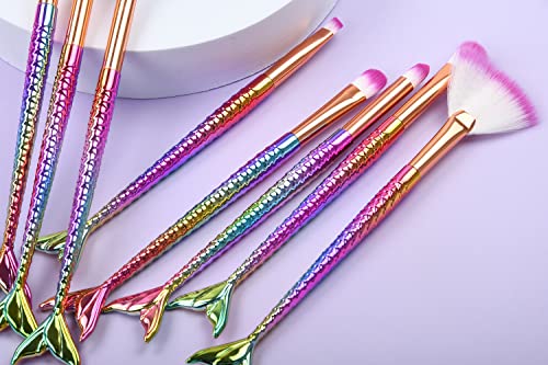 LHEI New 10 Pcs Mermaid Makeup Brush Set Professional Eye Makeup Brushes For Eyeshadow Concealer Eyeliner Brow Blending Brush Tool