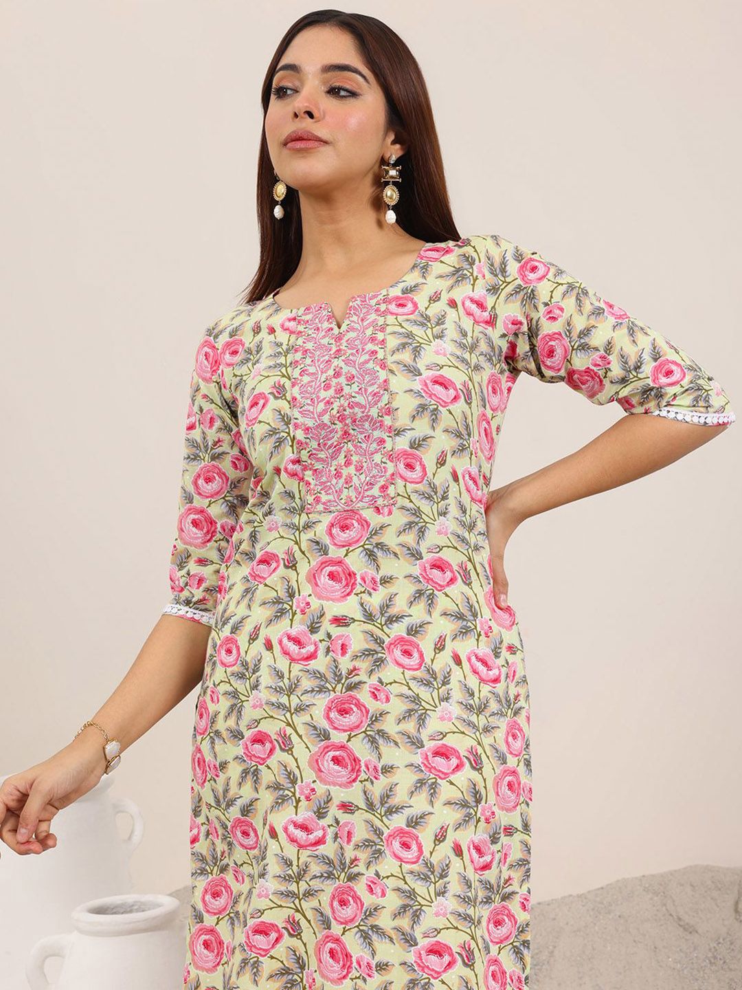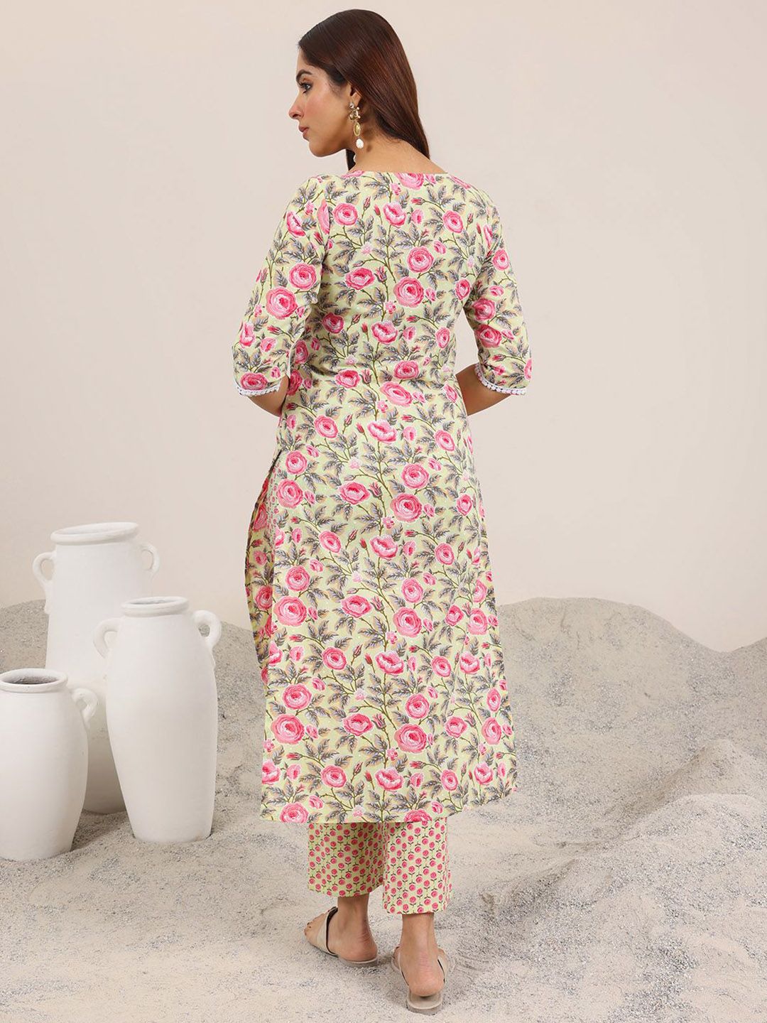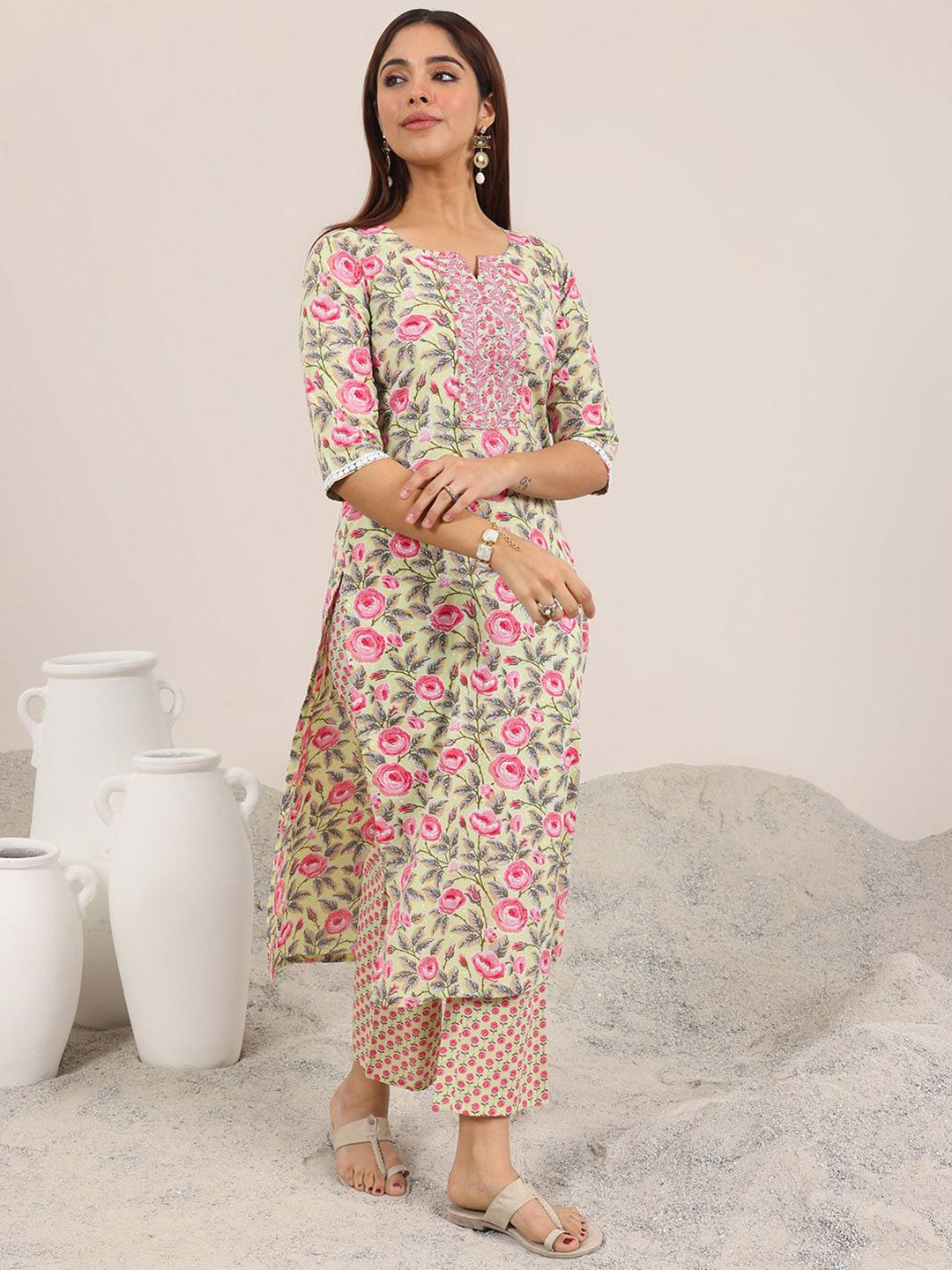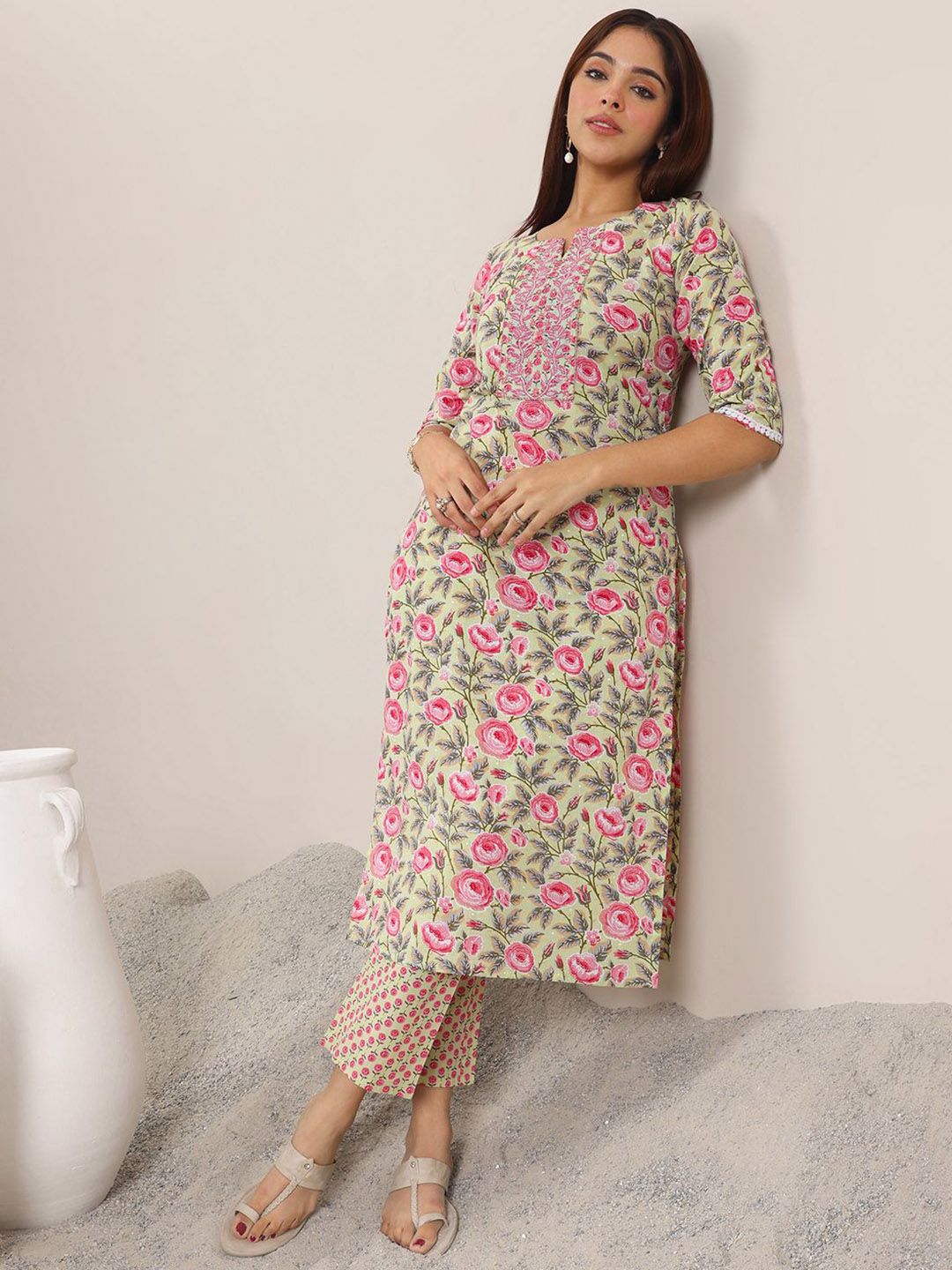 Libas Floral Printed Round Neck Straight Kurta With Trouser