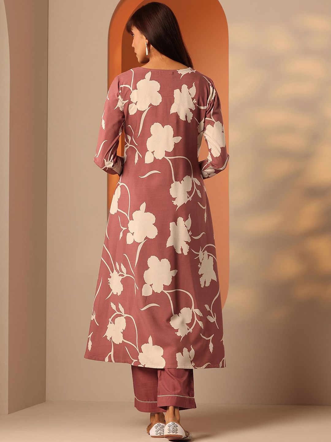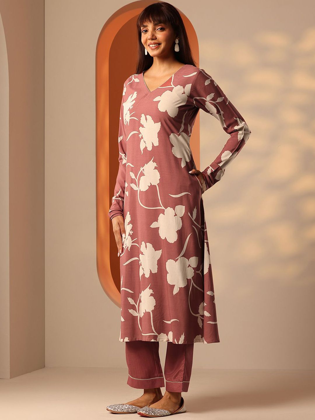 Libas Floral Printed V-Neck A-Line Kurta With Trousers