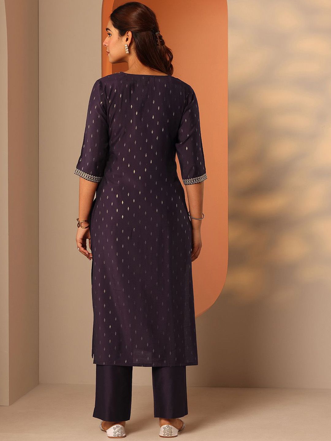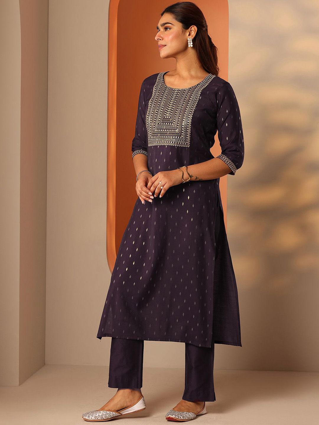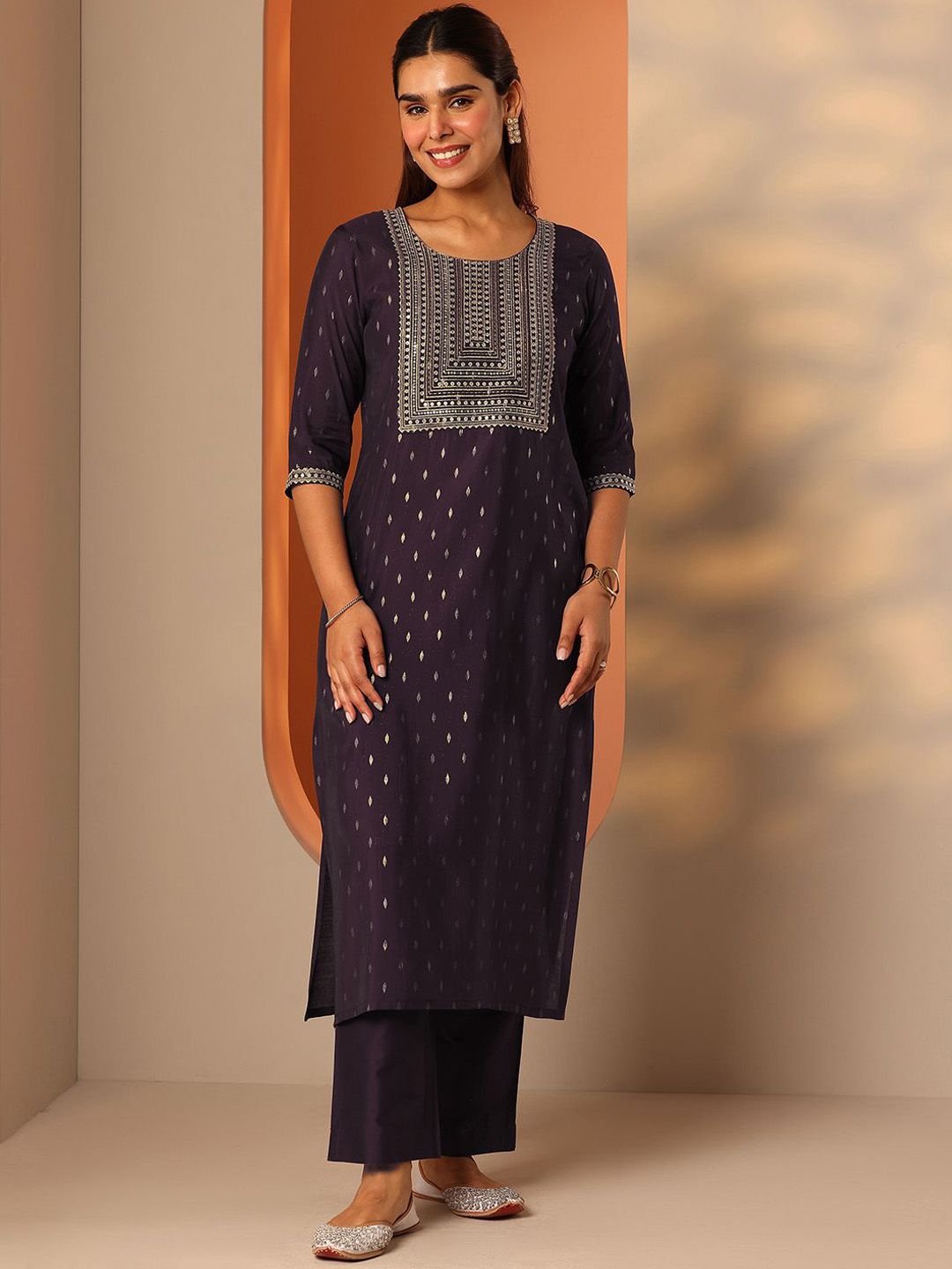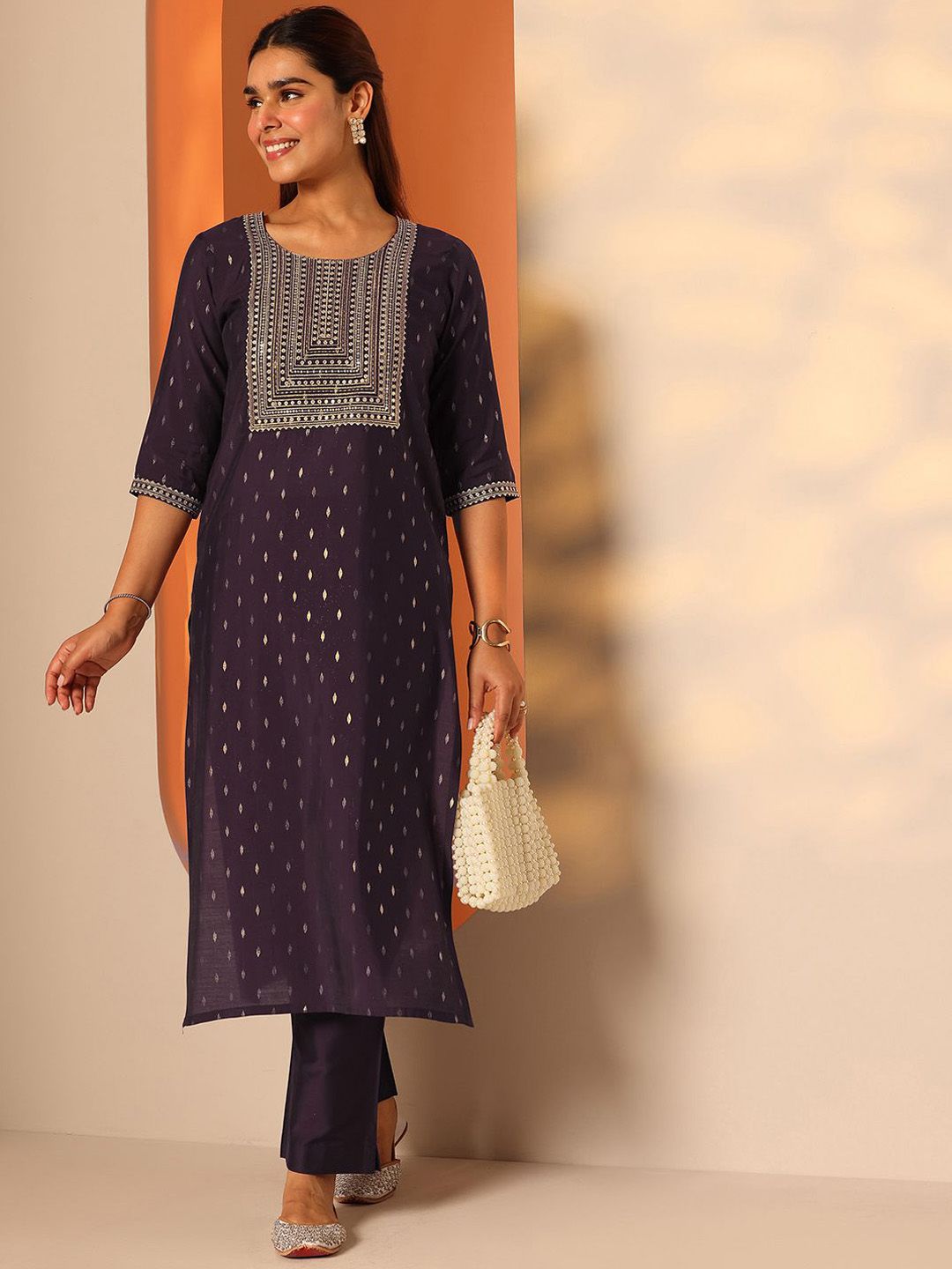 Libas Women Ethnic Motif Yoke Design Sequinned Kurta with Trousers
