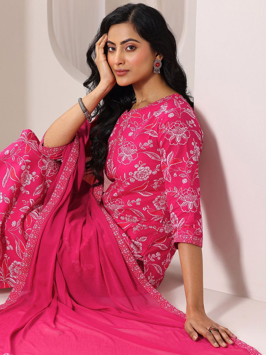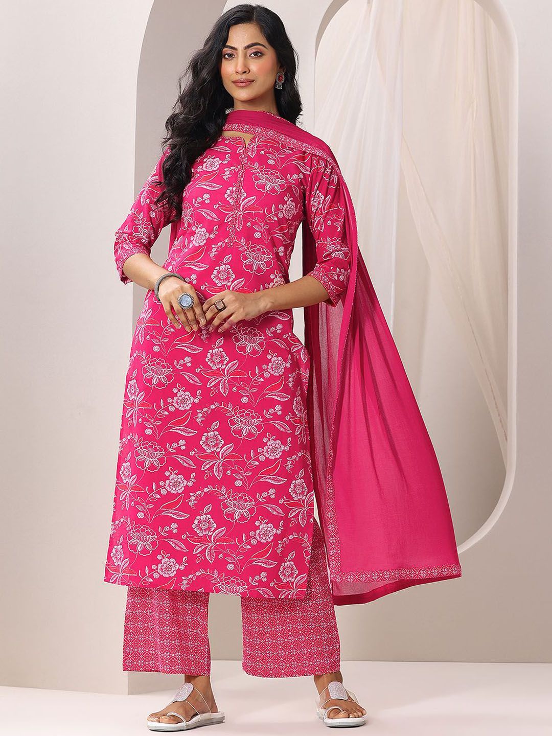 Libas Women Floral Print Regular Kurta with Palazzos & With Dupatta