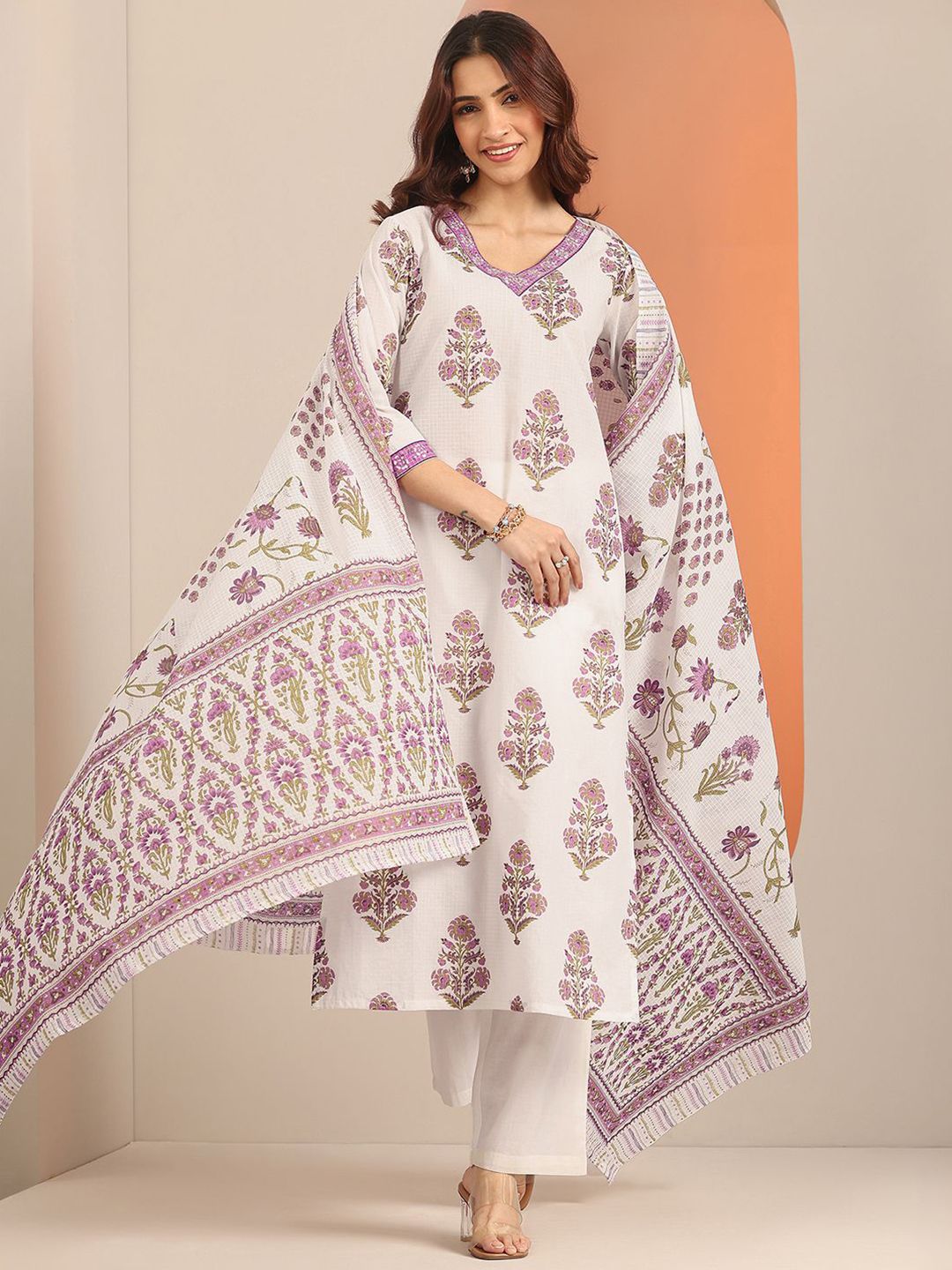 Libas Women Floral Printed Kurta with Trouser & Dupatta