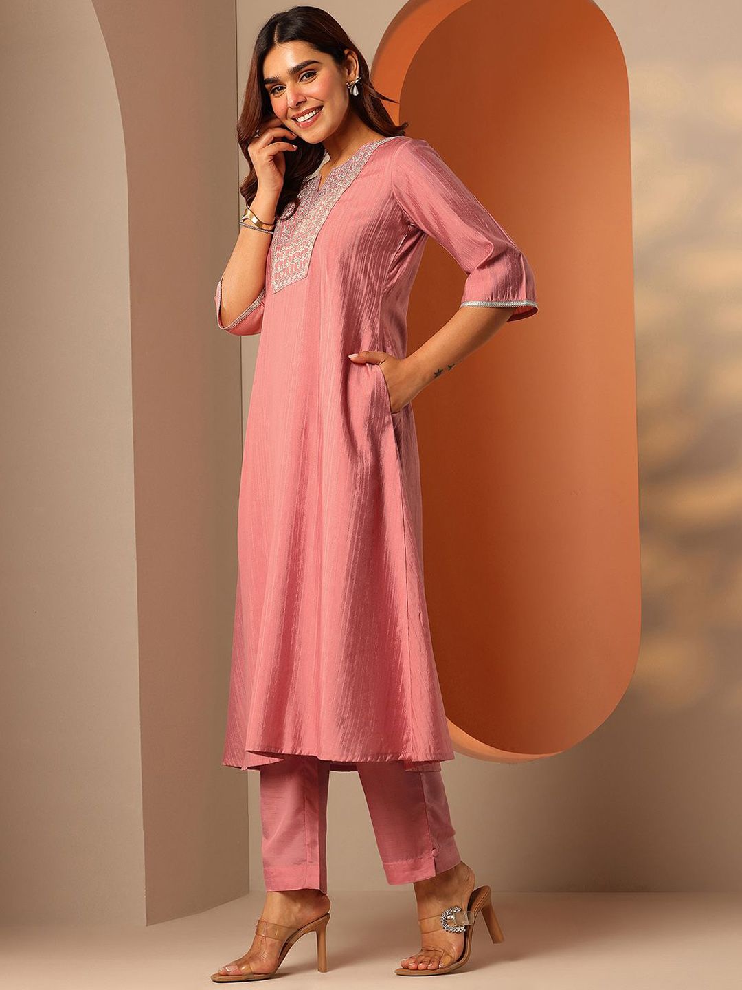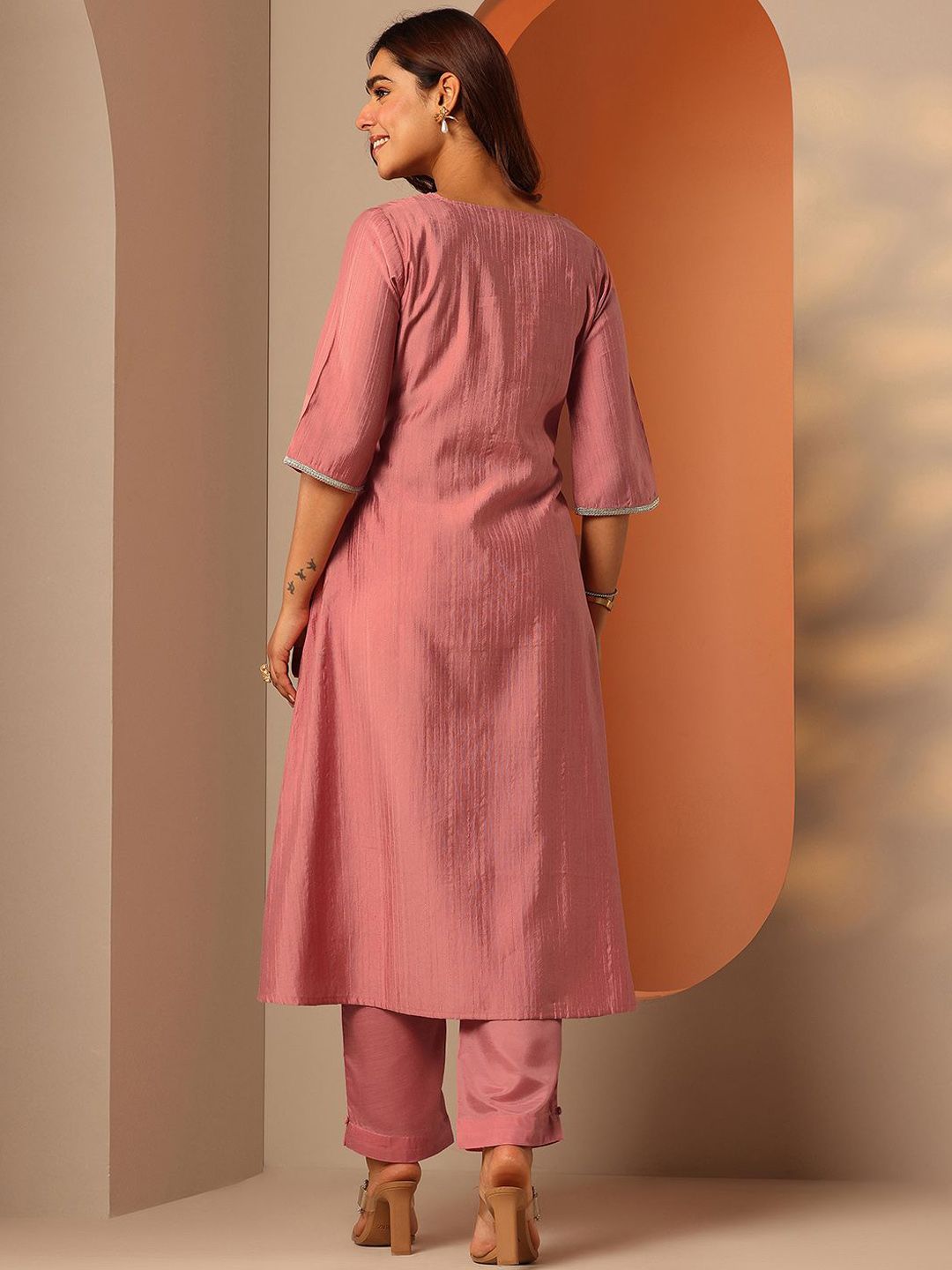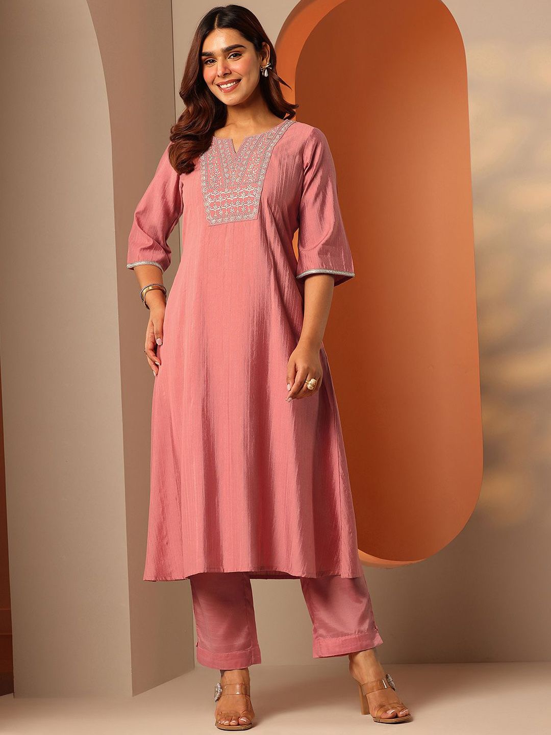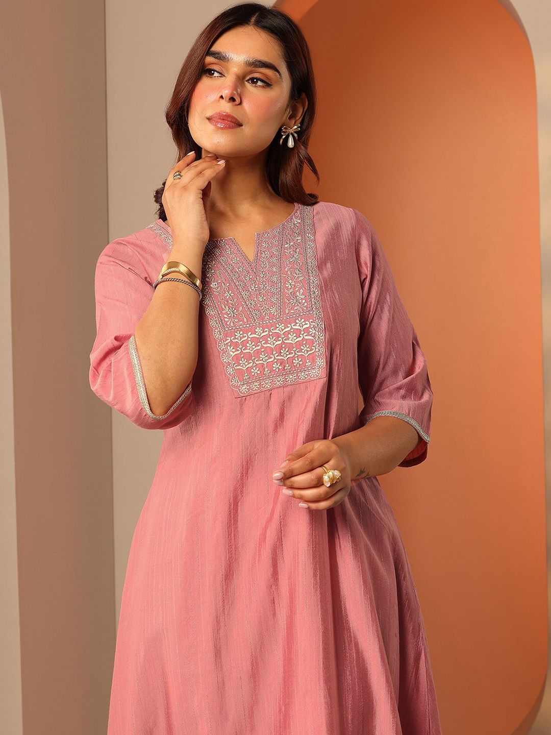 Libas Women Woven Design Embroidered A-Line Kurta with Trousers