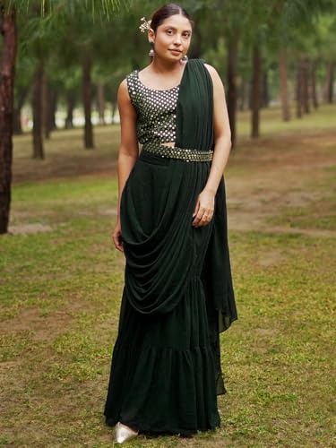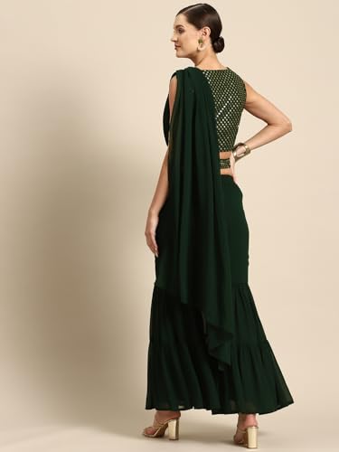 Libas Women's Embroidered Georgette Ready To Wear Saree With Stitched Blouse