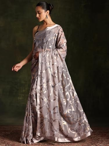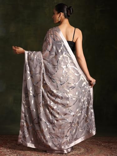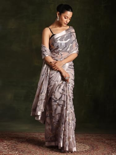Libas Women's Grey Woven Design Brasso Saree With Unstitched Blouse