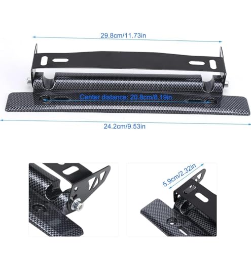 Material: Stainless Steel, Carbon Fibre ` Protecting from rust, corrosion and aging. The durable license plate bracket protect your plates from the elements while giving your vehicle a unique look. The cool and funny license plate frames Simple to install and dismantle Lightweight and durable Size: 6 x 32 x 5cm; material: plastic