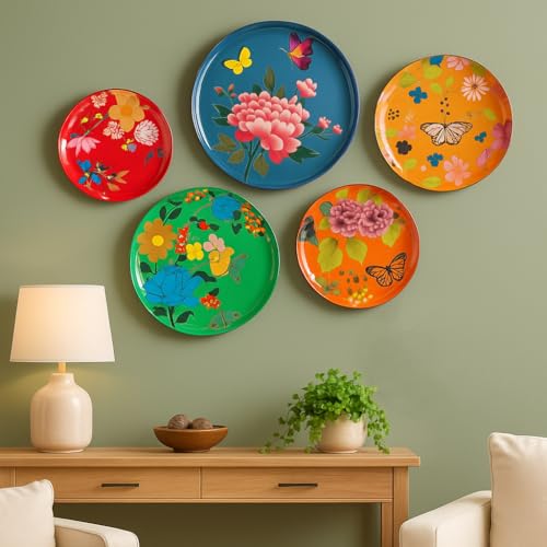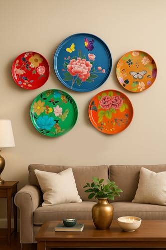 LIFEHACKS Madhubani Art Wall Plates for Home Décor | Living Room Wall Decoration Items | Metal Wall Art Sets | Unique Gift | Contemporary Home Décor | Set of 5 - Model 14