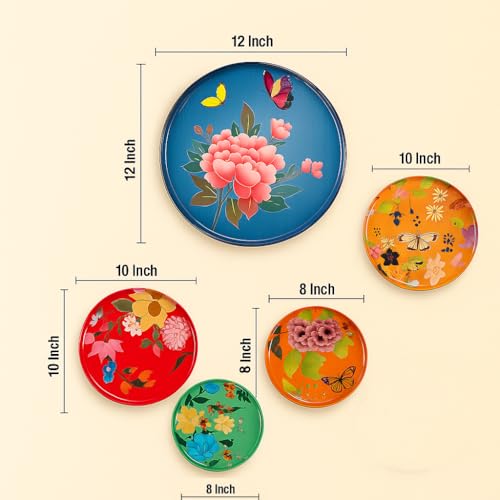 Showcasing authentic Madhubani folk art designs, these decorative plates bring traditional Indian artistry to your walls with intricate patterns and vibrant colors. Crafted from best-in-class metal, the plates offer durability and a sophisticated finish that enhances any living space while withstanding everyday wear. Presented as a versatile set of 5, each plate features unique designs that complement one another, allowing for creative arrangement options in your home décor. Perfect for gifting occasions, these plates combine cultural significance with aesthetic appeal, making them thoughtful presents for both women and men who appreciate artistic home accessories. Each plate is designed to be lightweight yet sturdy, ensuring easy installation and long-lasting enjoyment as functional art pieces that transform plain walls into focal points of beauty