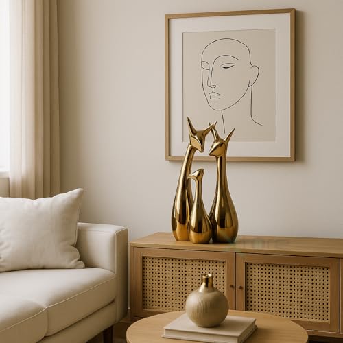 LIFEHAXTORE® Home Decor Lucky Deer Statue Family Piano Finish Ceramic Figures - (Set of 3, Golden Set), Animal