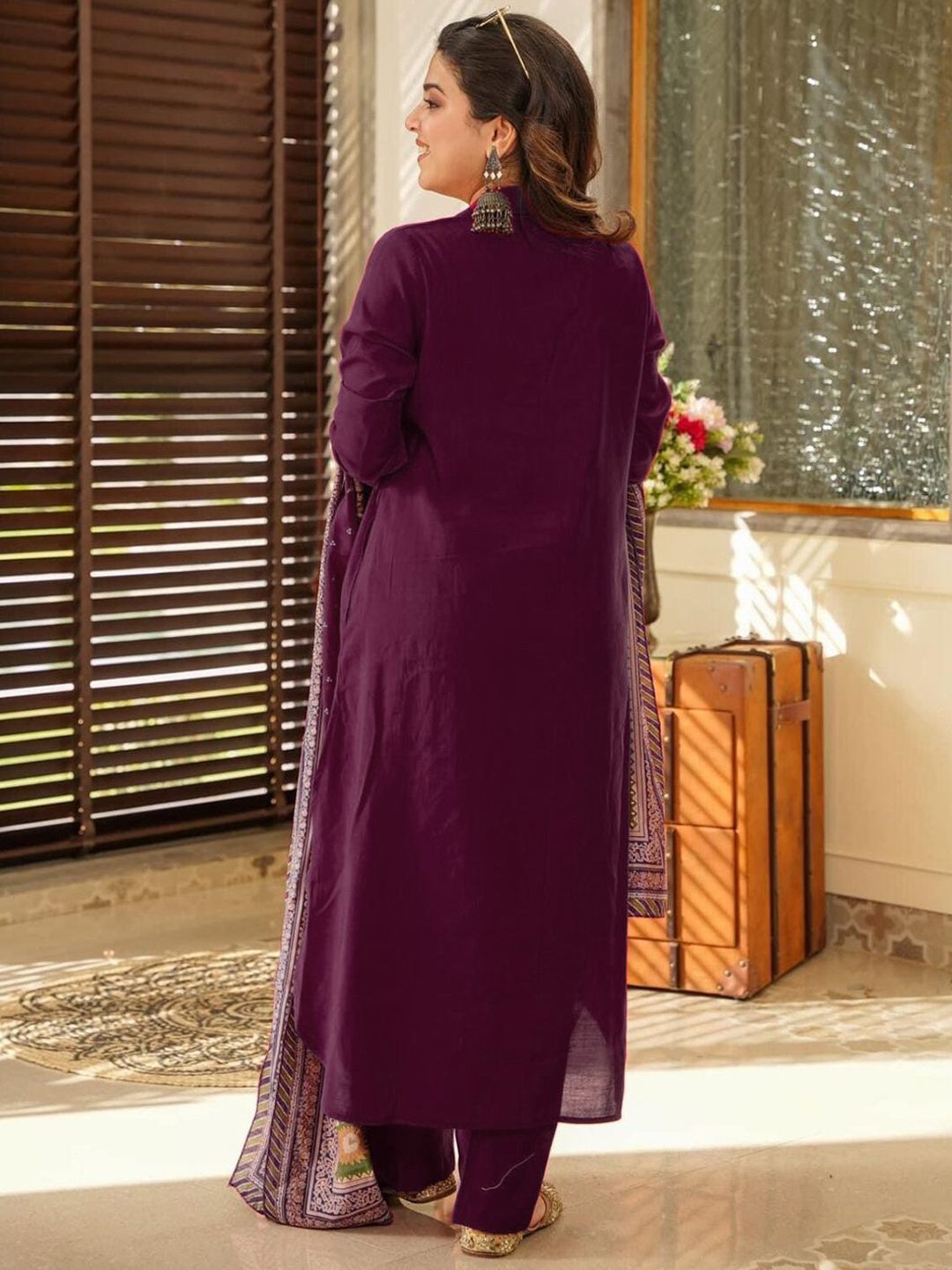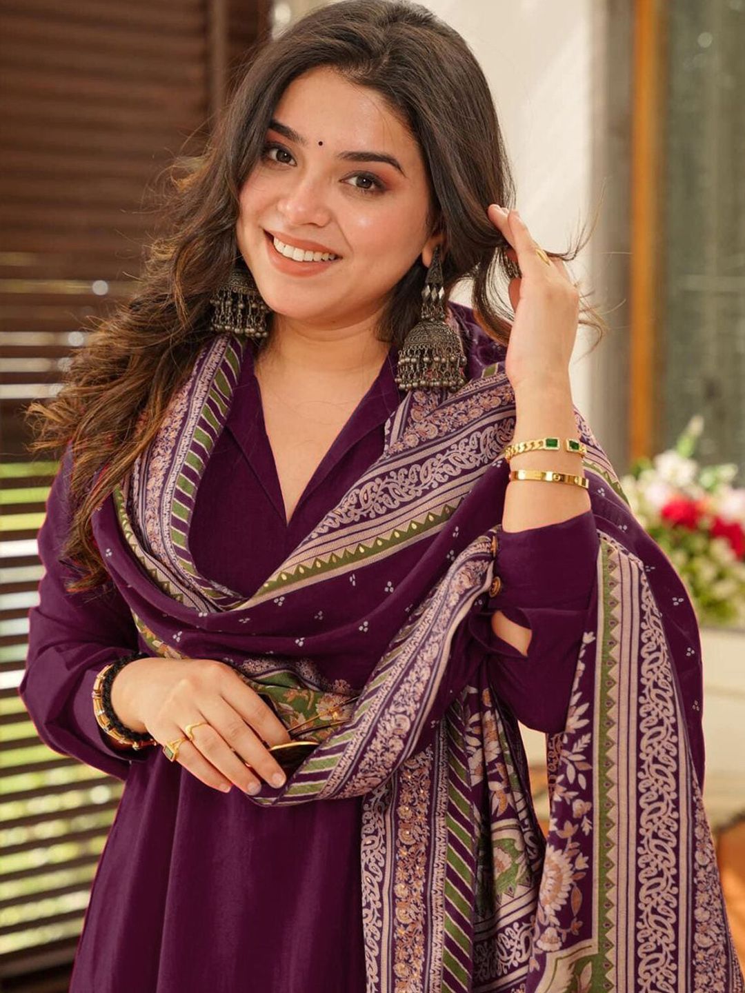 Lilots V-Neck A-Line Kurta With Trousers And Dupatta