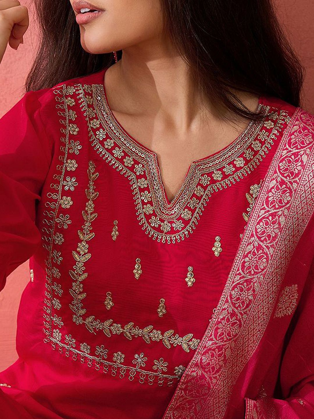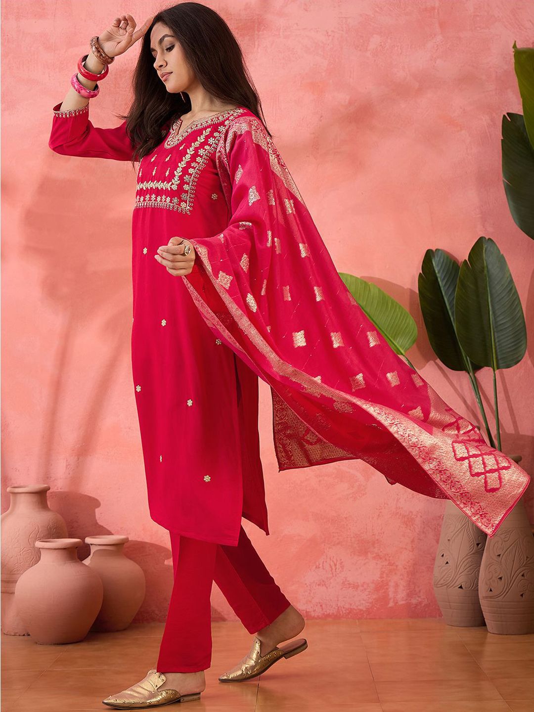 Lilots Women Embroidered Regular Thread Work Kurta with Trousers & Dupatta Kurta Sets