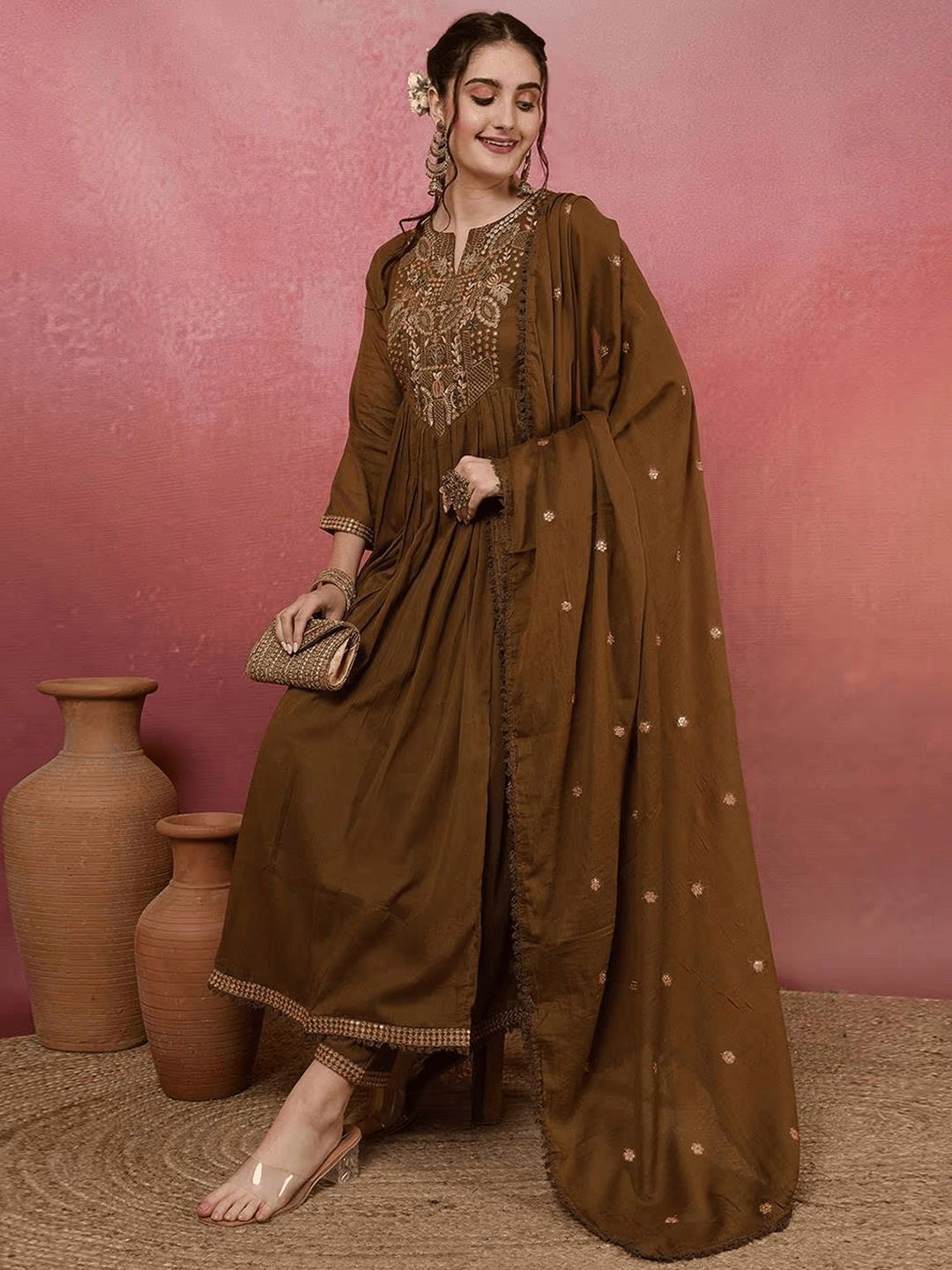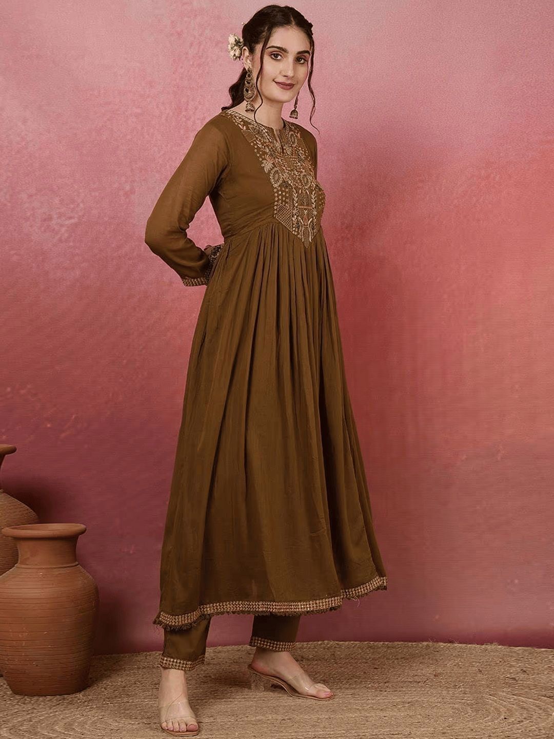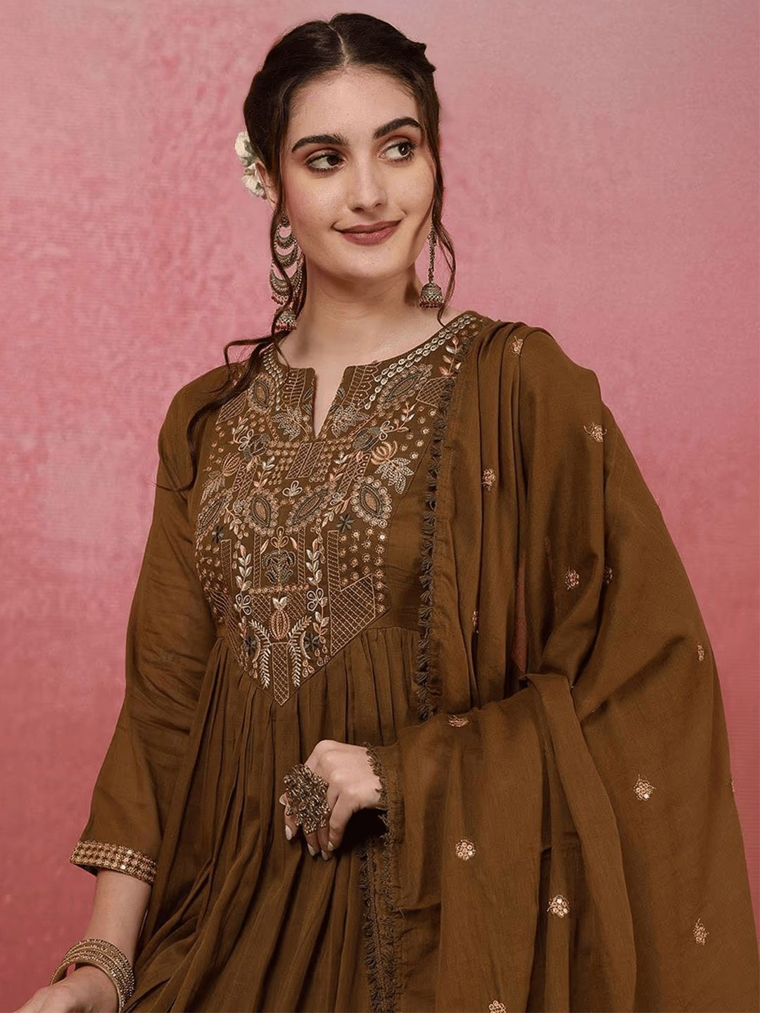 Buy this stylish Lilots Women Ethnic Motifs Embroidered V-Neck Chanderi Silk Kurta with Trousers & Dupatta at Marincart Nepal. This product offers great quality and value. Perfect for those looking for the latest trends in fashion. Get yours now at unbeatable prices.