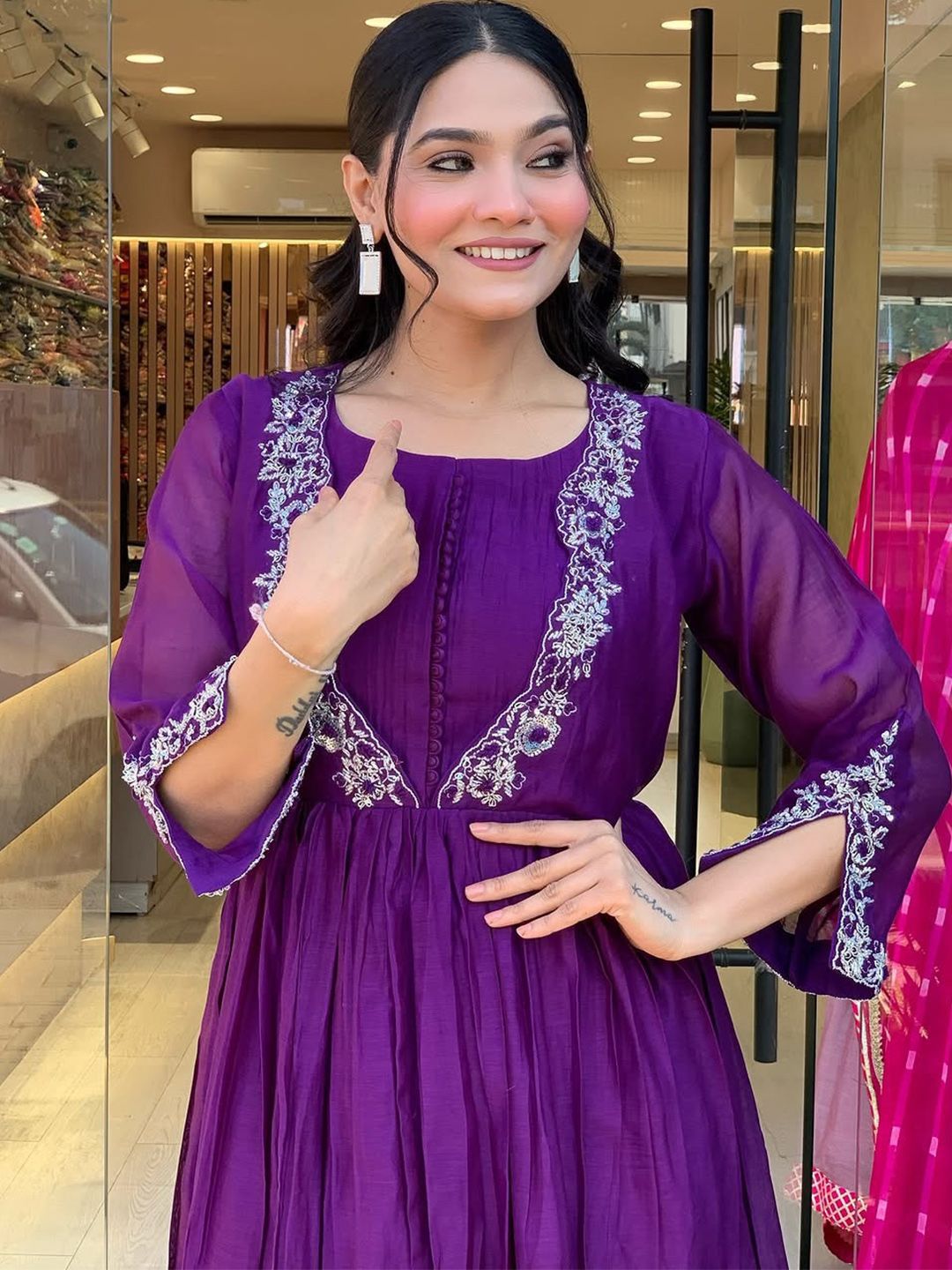 Lilots Women Solid A-Line Kurta with Trousers & Dupatta