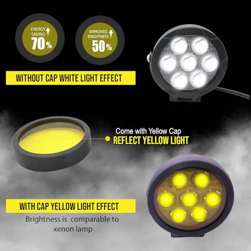 LIU HJG 7 LED Round White Fog Light With Yellow Cap (70W) With Wiring Kit Harness And Adjustable Lumens Switch Spot Driving Lamp Universal for Car, Bike (Pack Of 2)