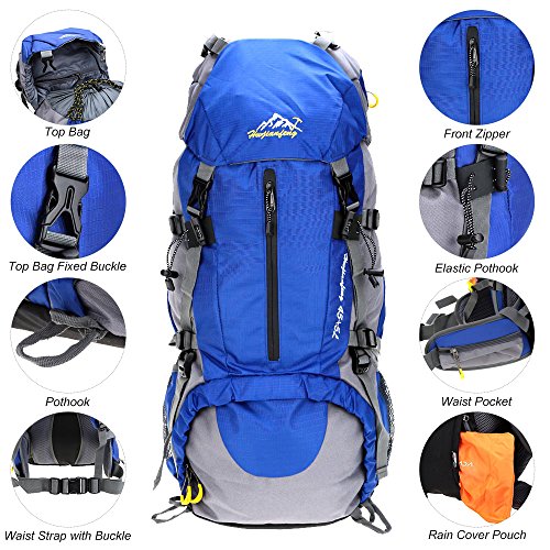 Lixada 50L Hiking Backpack with Rain Cover Outdoor Water Resistant Backpacking Daypack for Trekking Camping Travelling (Royal Blue) Royal Blue