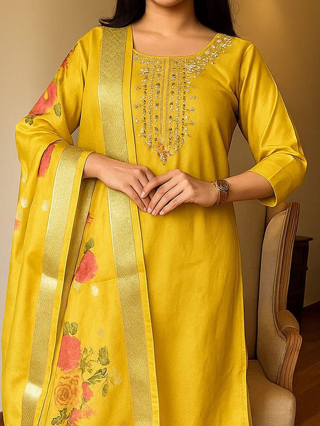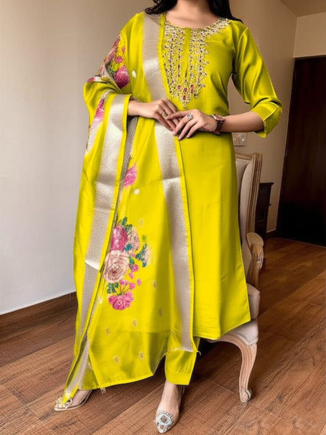 LIZORD FAB Women Floral Embroidered Regular Thread Work Kurta with Trousers & Dupatta