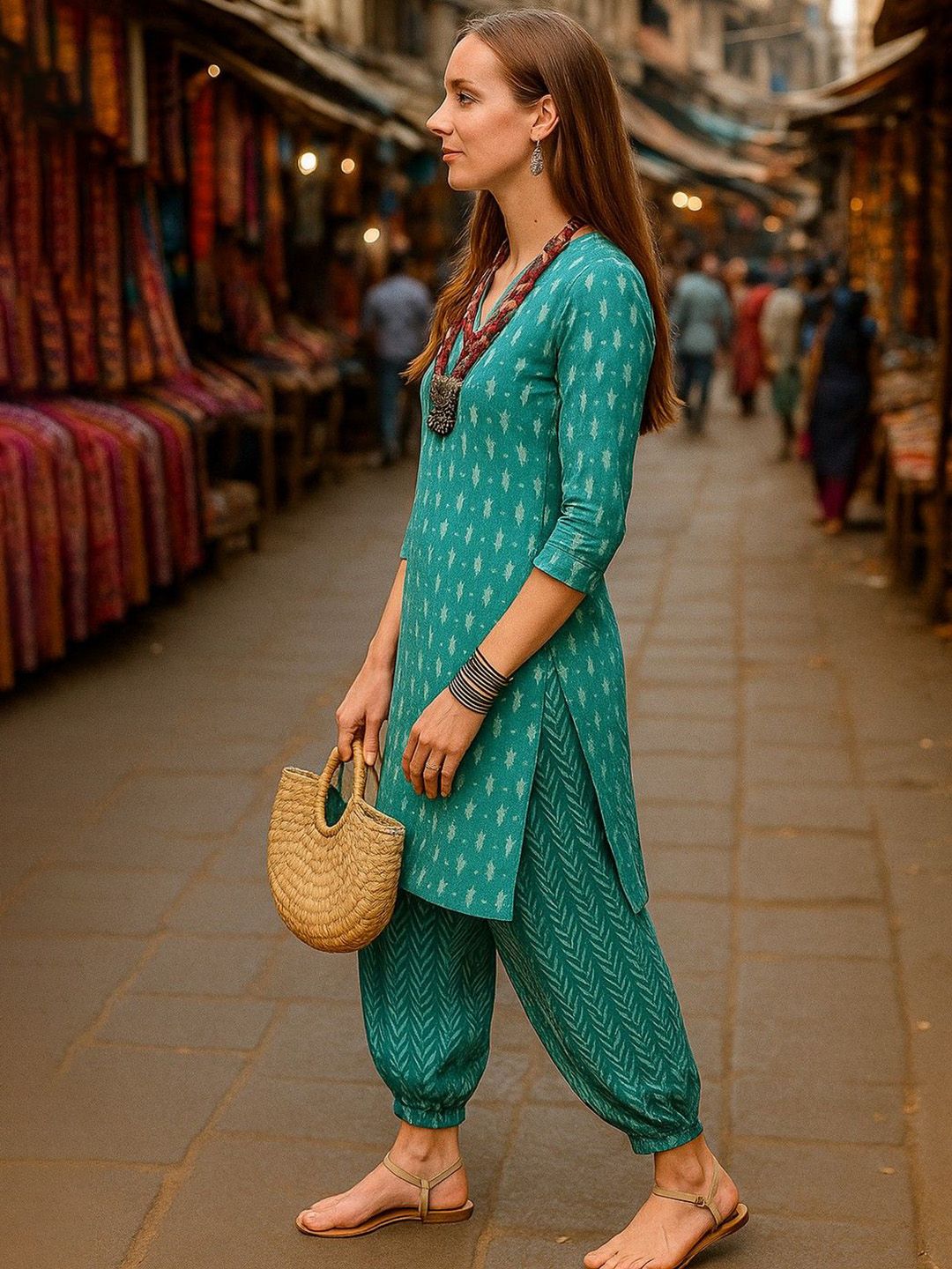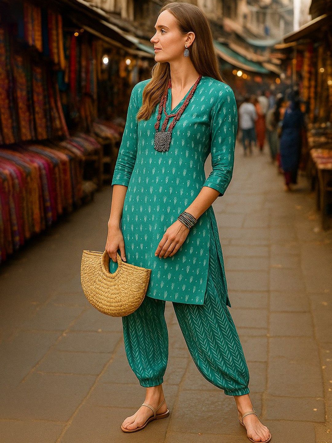 Lookmark Geometric Printed Straight Kurta With Trousers