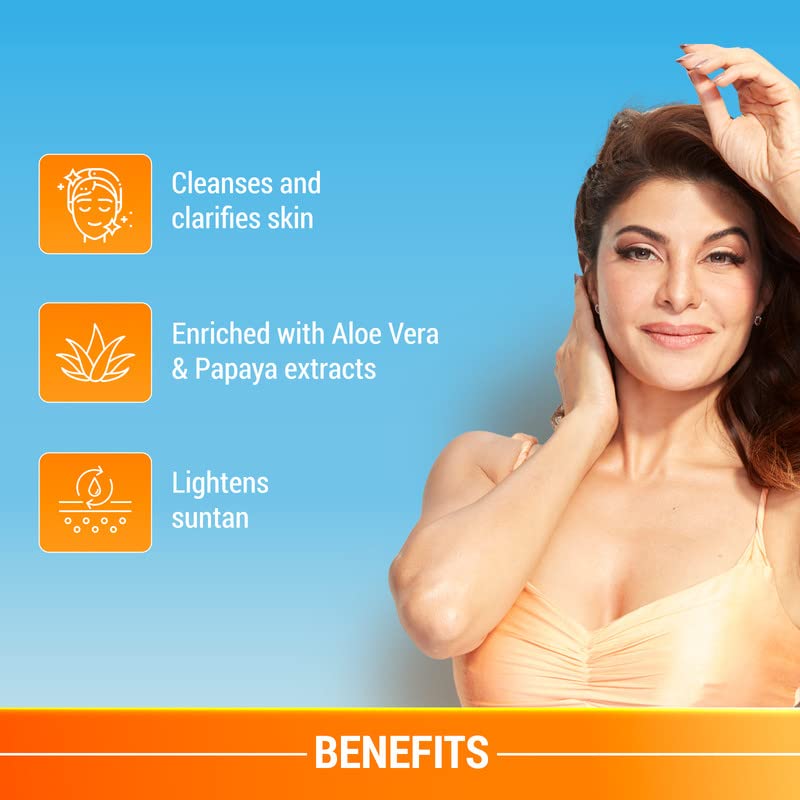 Clarifies skin- The facewash deep cleanses and clarifies your skin to reveal hydrated, smooth skin Reduces the effect of suntan- This facewash reductes the apperance of sun tan with regular use enriched with natural extracts- This facewash is enriched with natural extracts of aloevera and papaya Cruelty & Preservative free- This product is cruelty and preservative free Suitbale for all skin types- this scrub is gentle enough to be used by all skin types