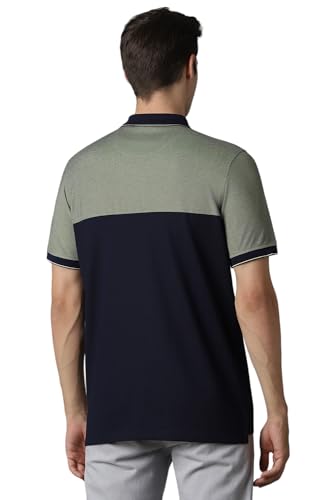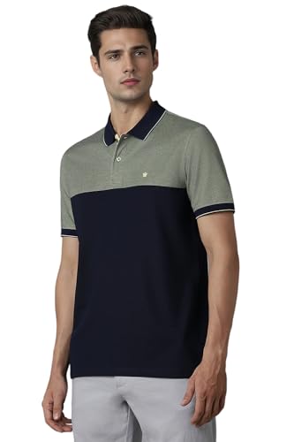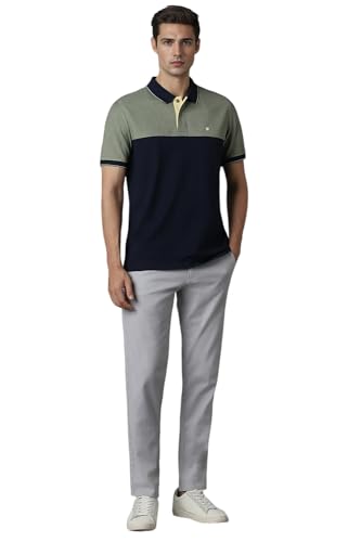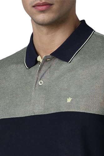 Louis Philippe Men's Regular Fit Striped Added Stretch Anti Microbial Odour Control Polo T-Shirt