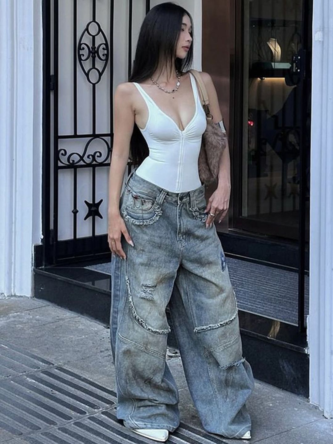 LULU & SKY Self-Designed Scoop Neck Front-zipper Bodysuit