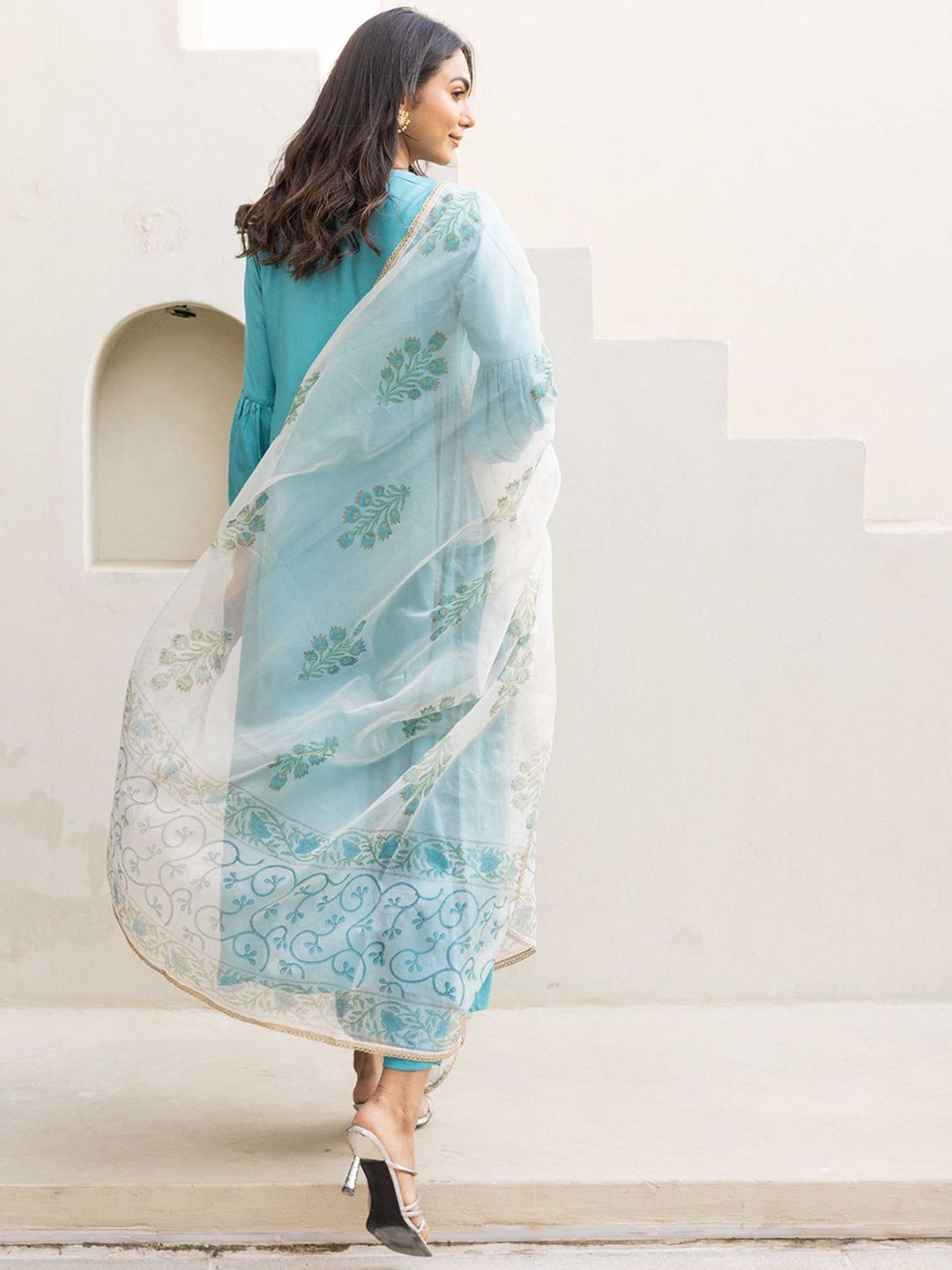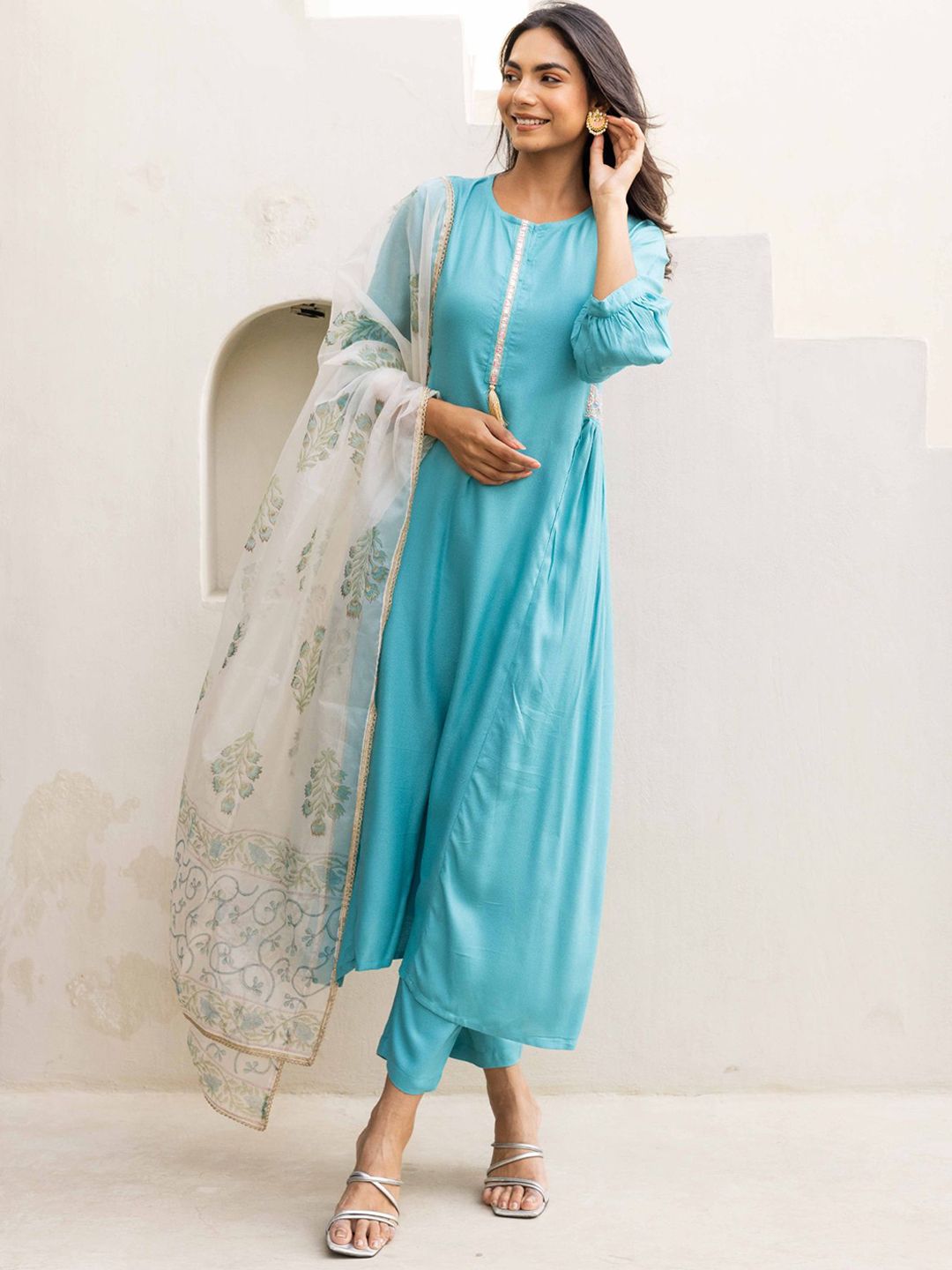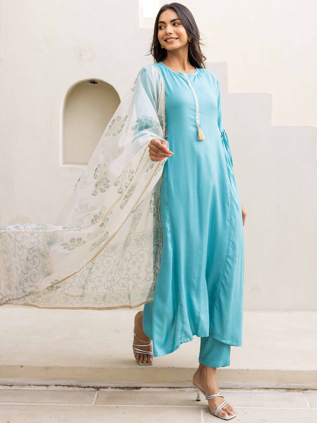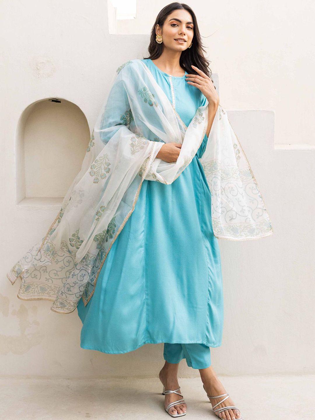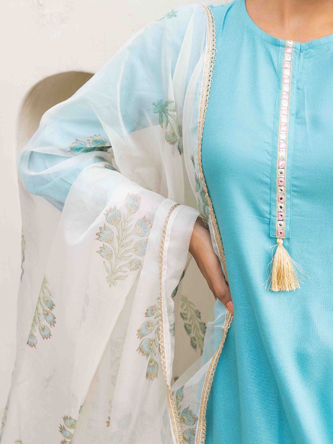 MAAND Mirror Work A-Line Kurta With Trousers And Dupatta