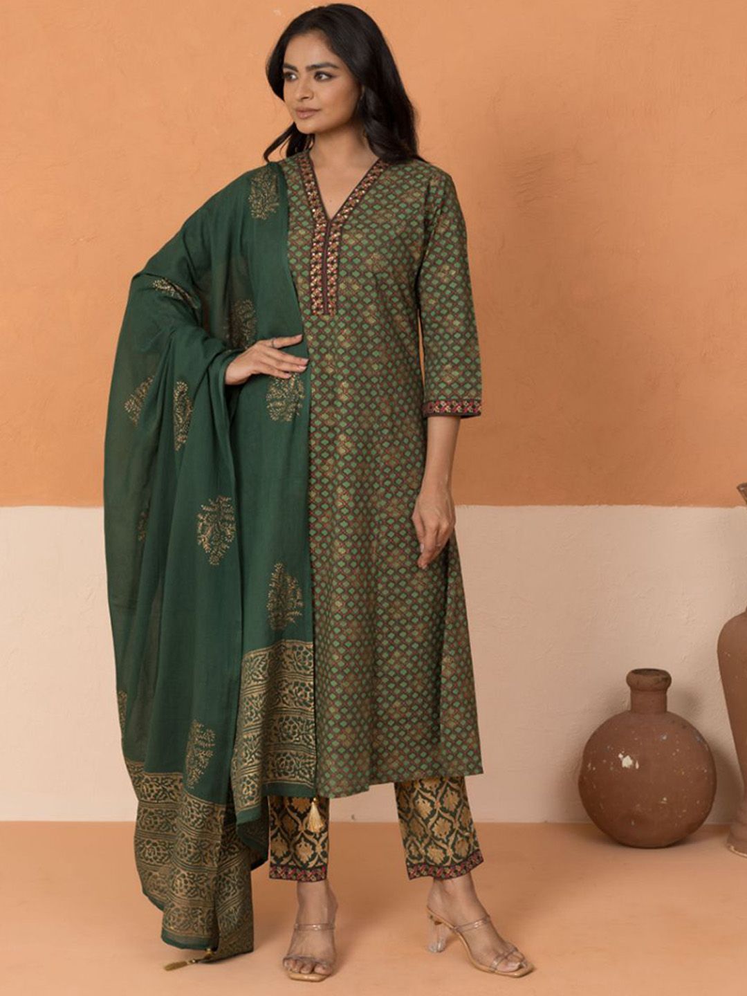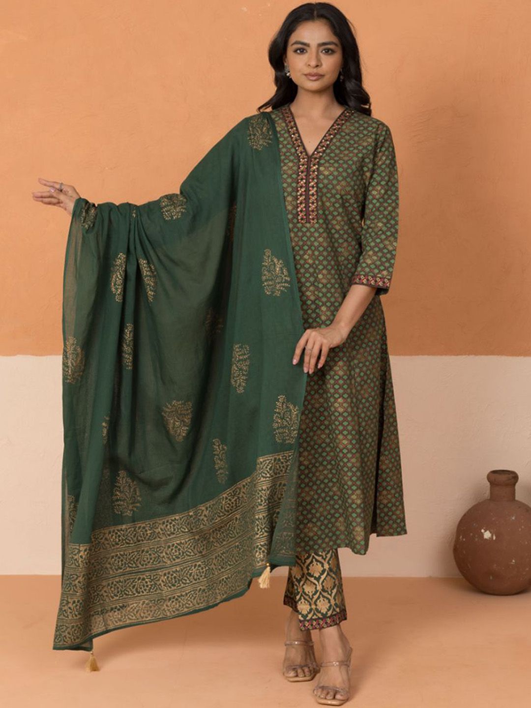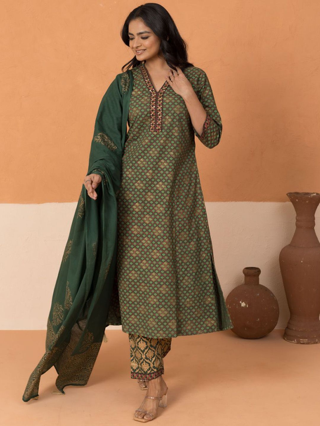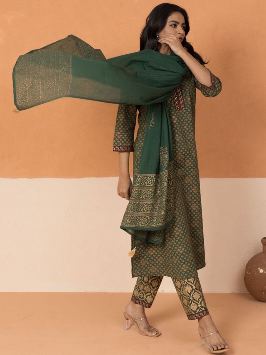 MAAND Women Embroidered Thread Work Pure Cotton Kurta with Trousers & With Dupatta