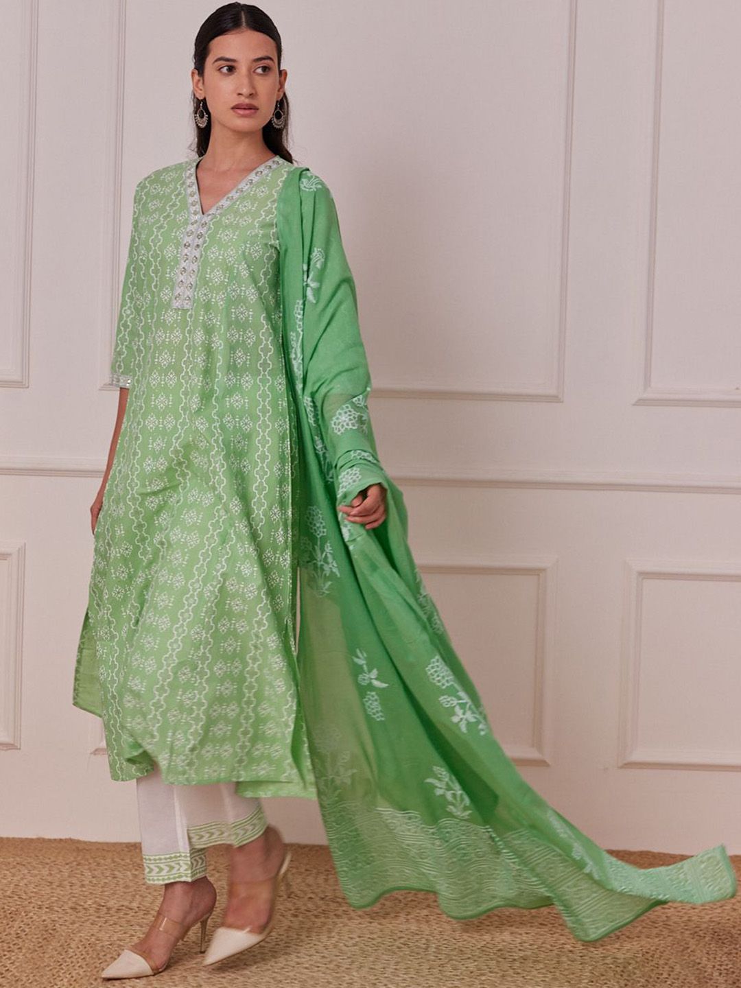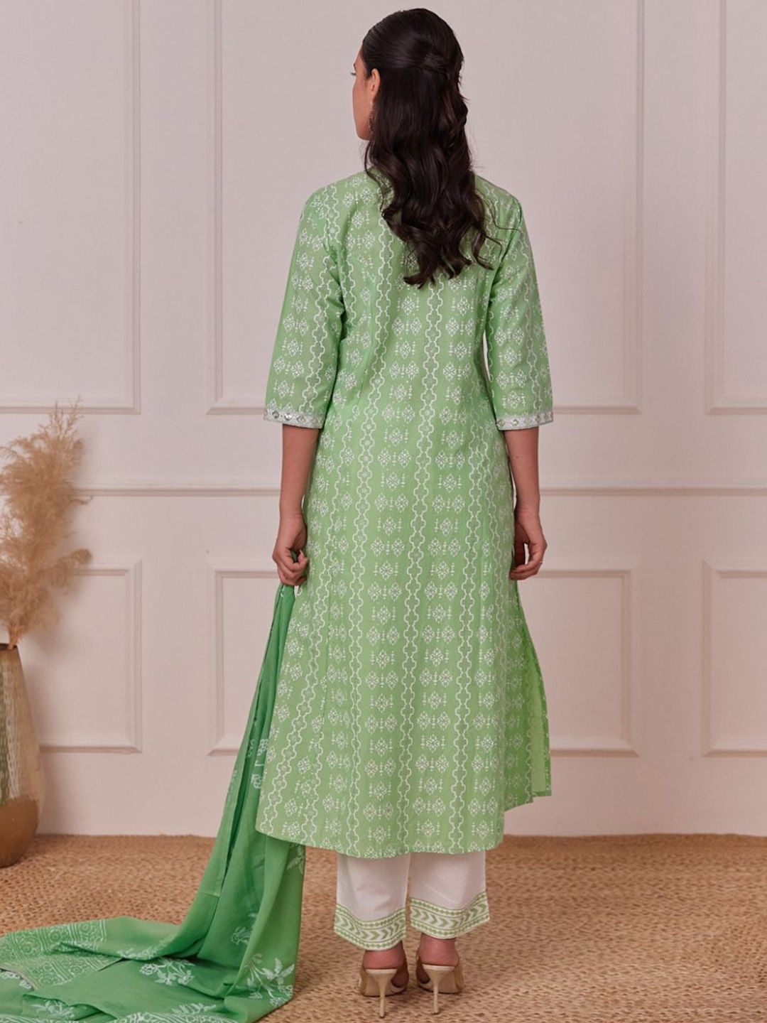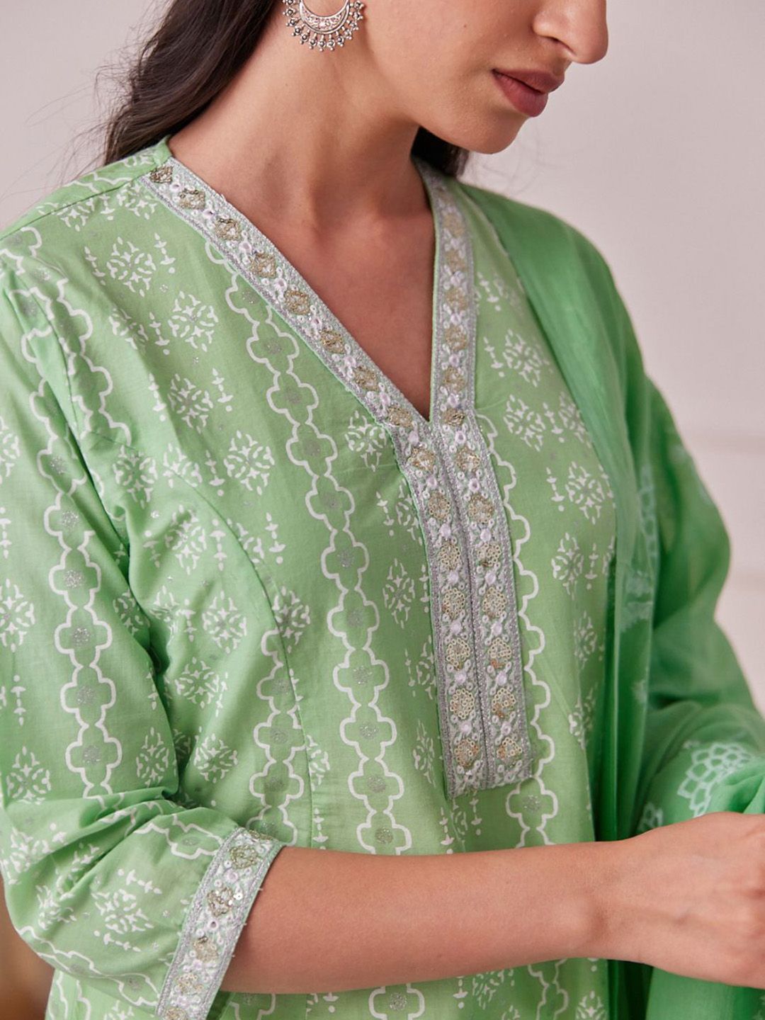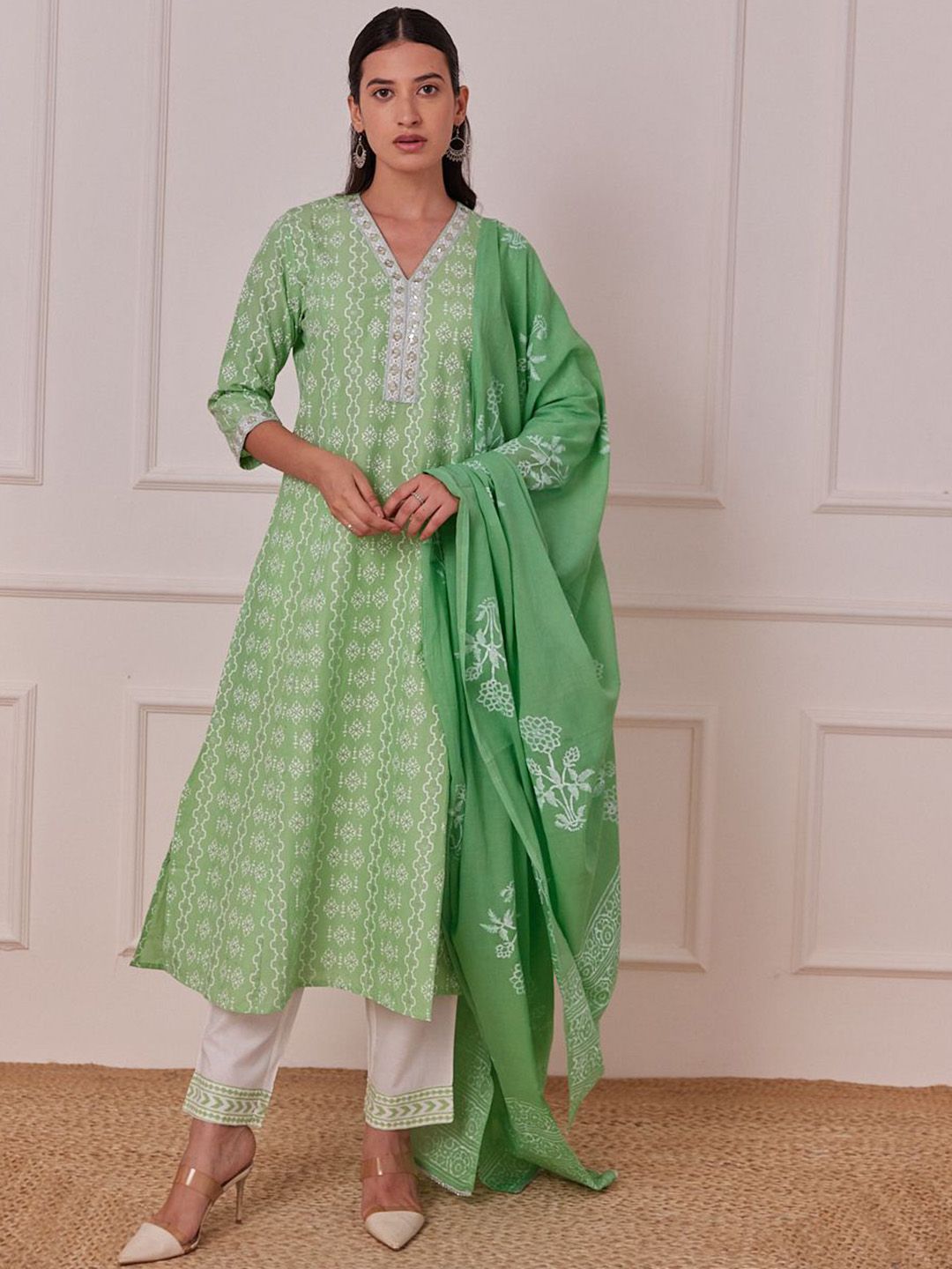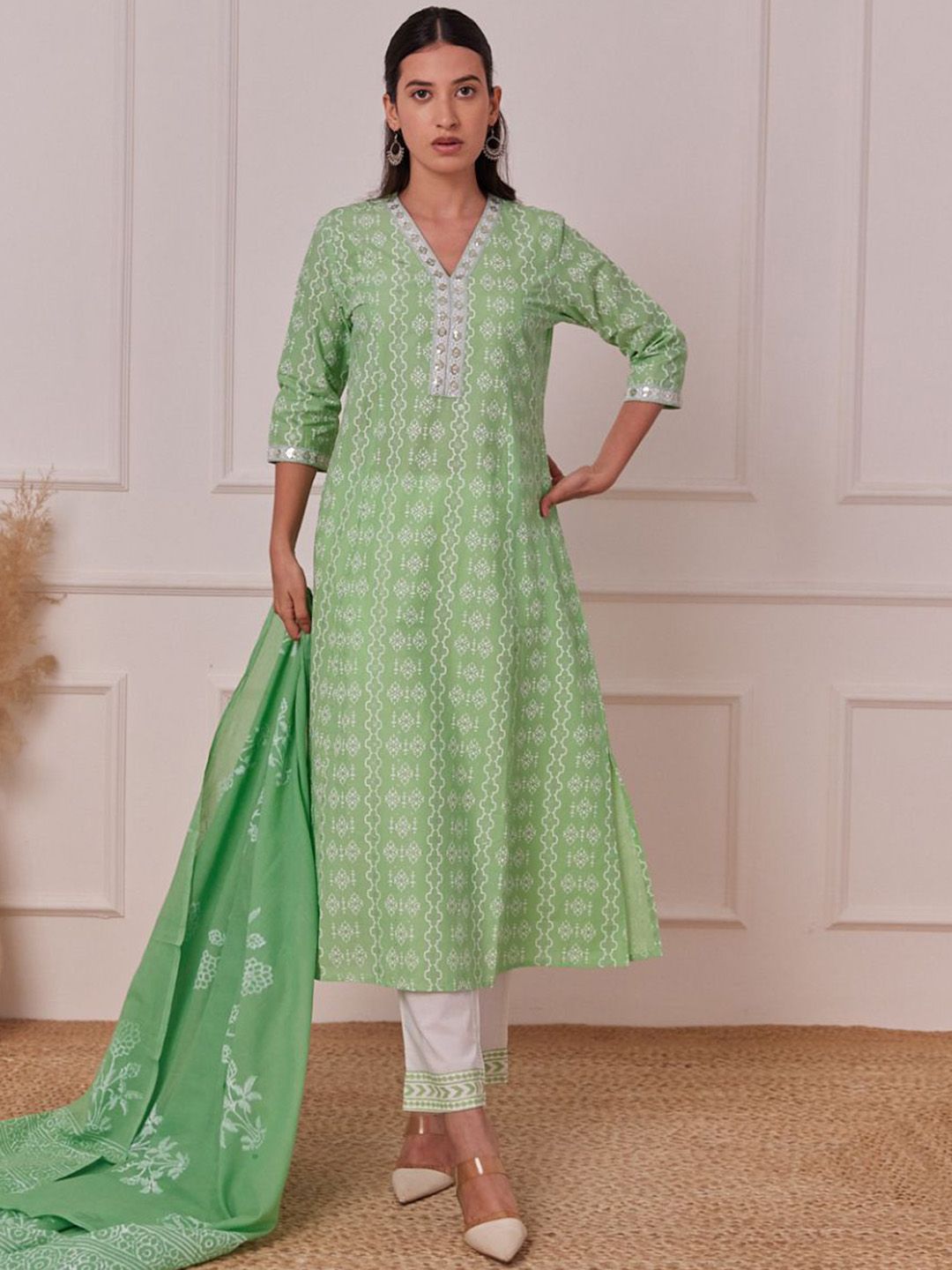 MAAND Women Ethnic Motif Printed Sequinned Pure Cotton Kurta Set With Dupatta