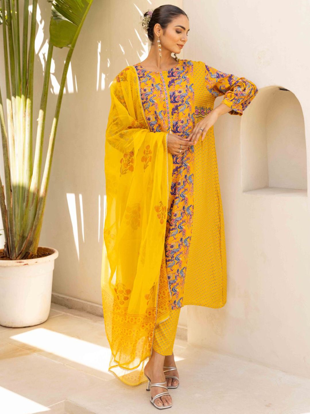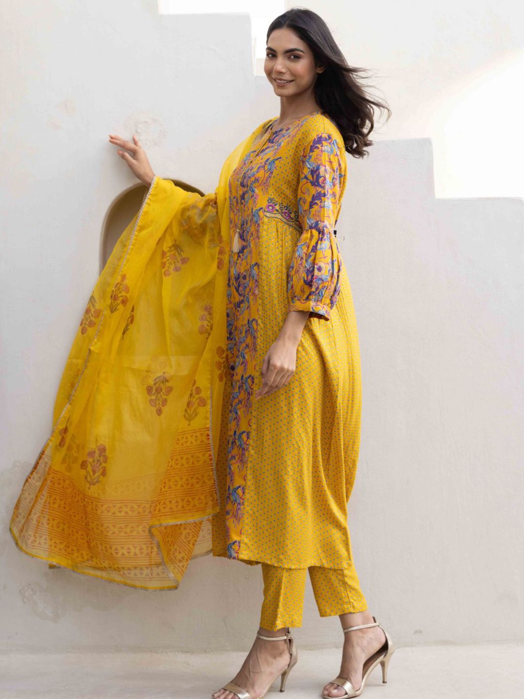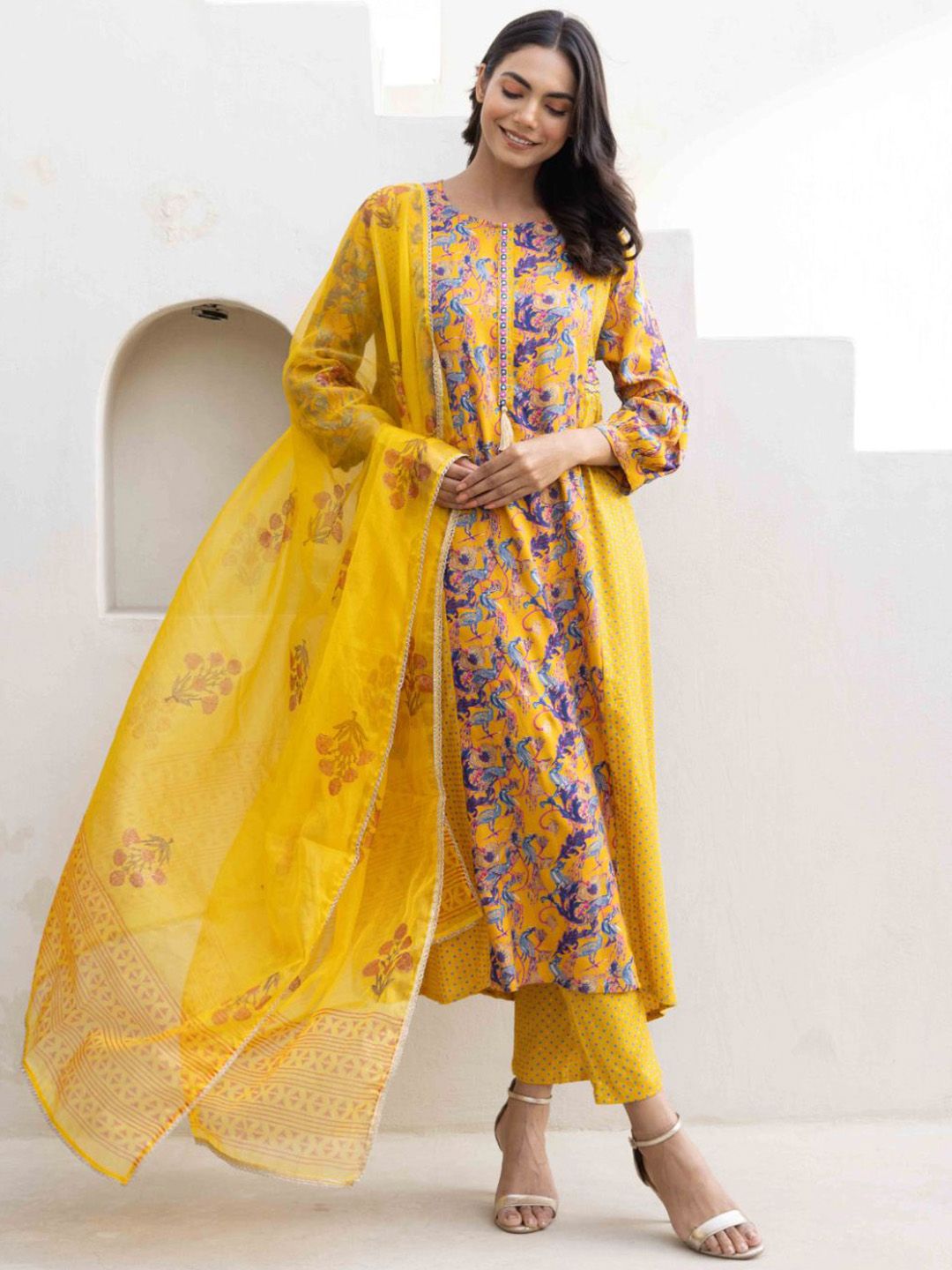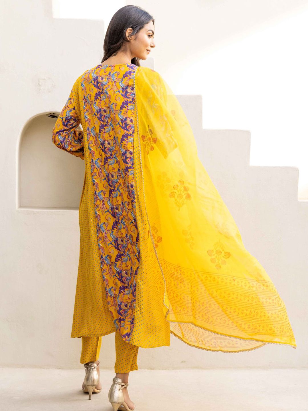 MAAND Women Floral Printed Kurta with Trousers & Dupatta