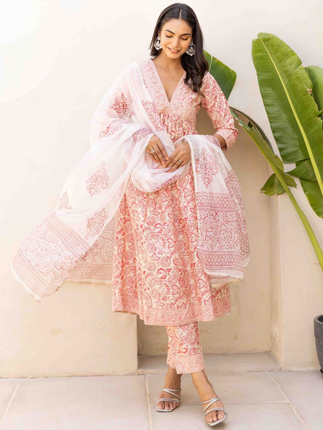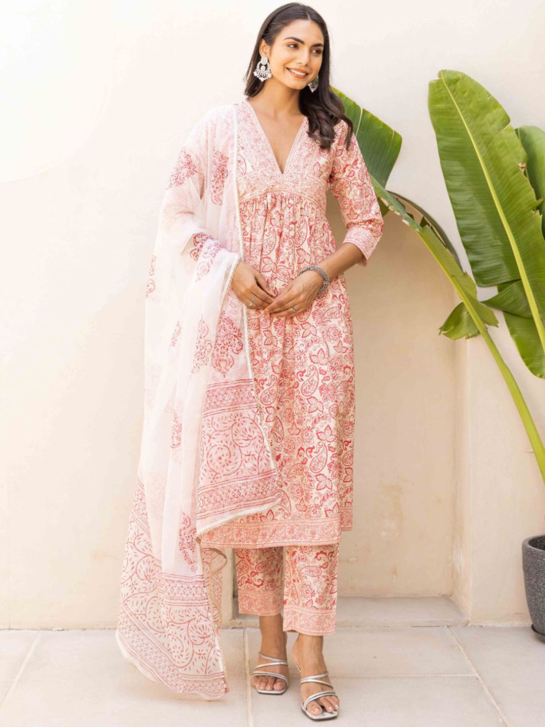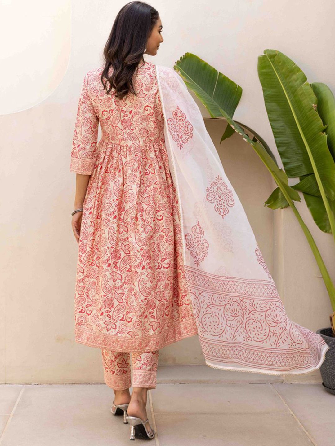 MAAND Women Floral Printed Silk Kurta with Trousers & Dupatta