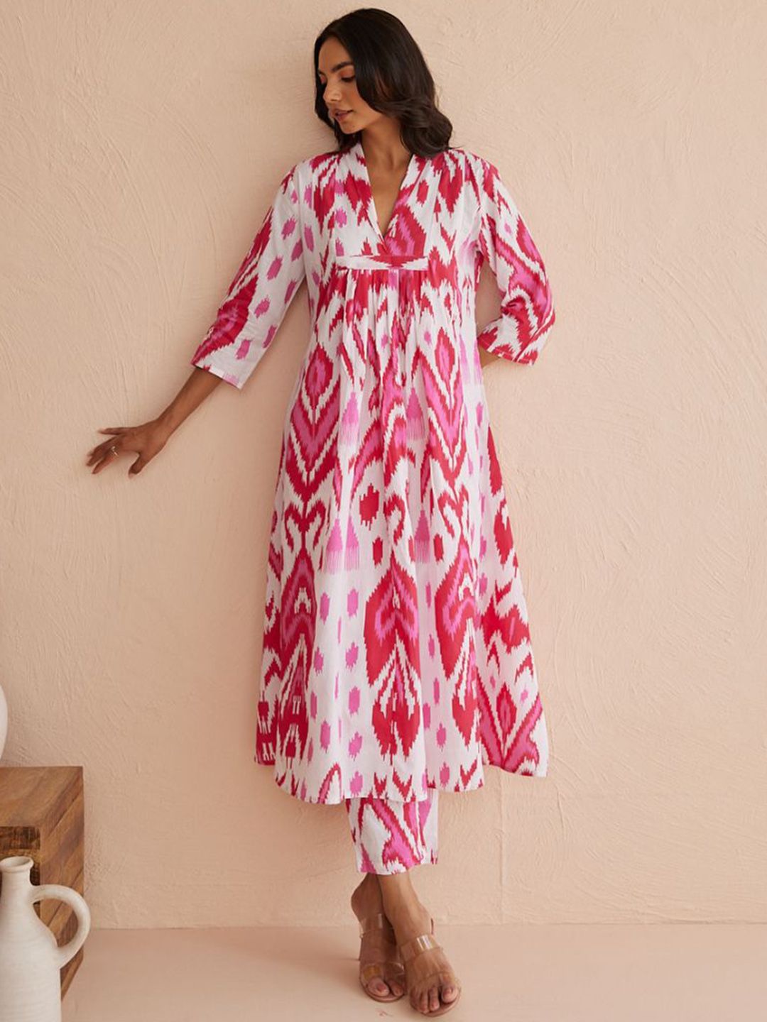 MAAND Women Printed Regular Pure Cotton Kurta with Trousers