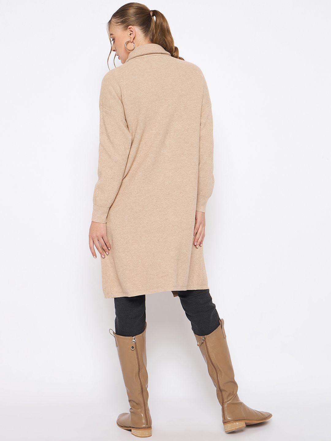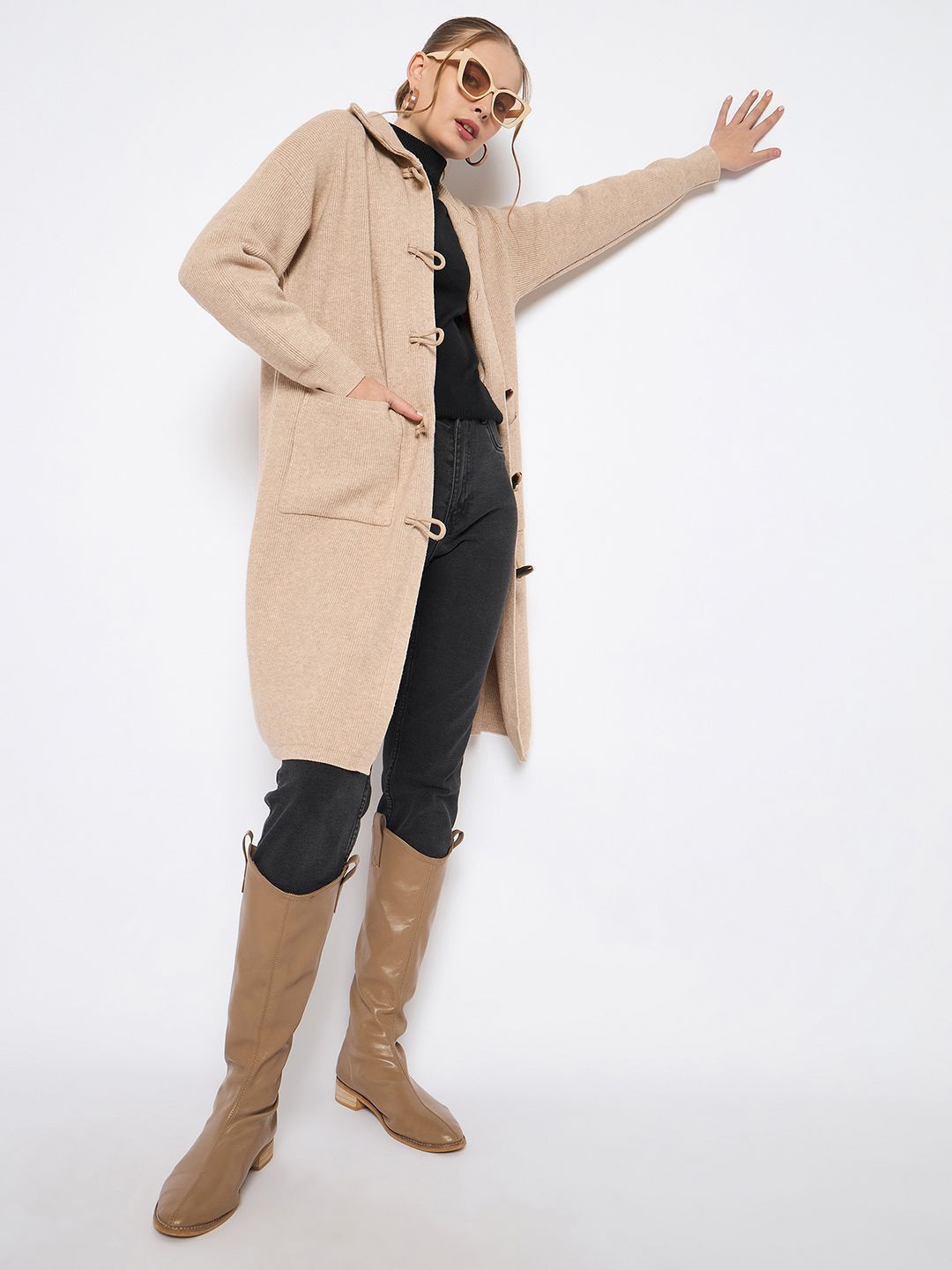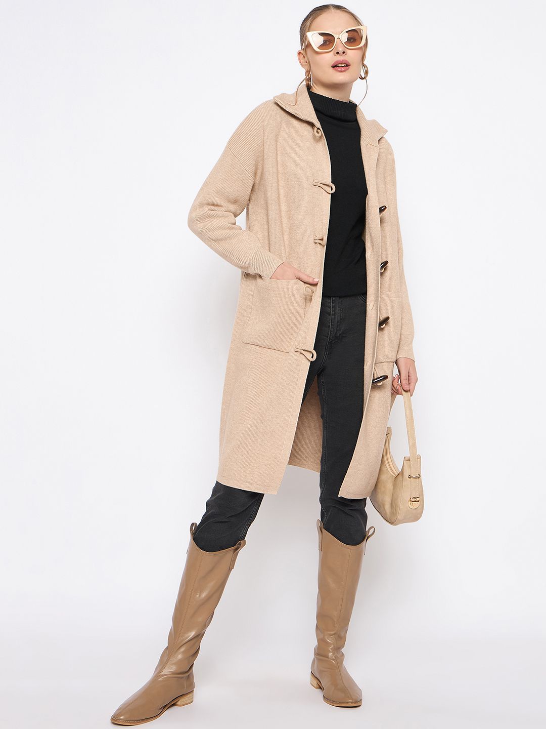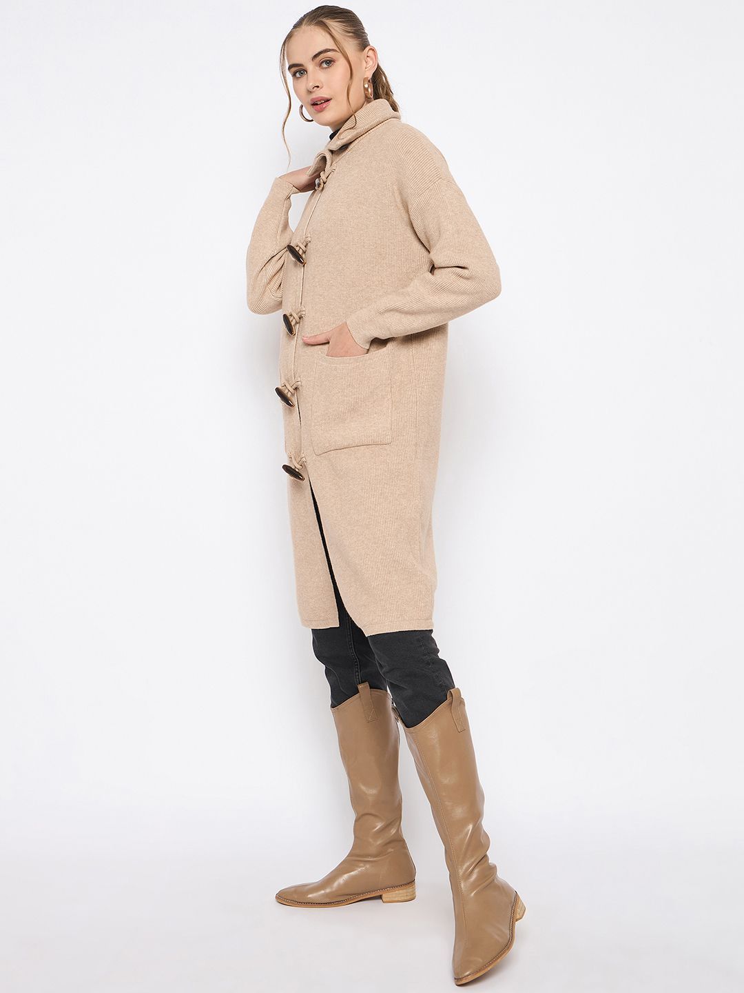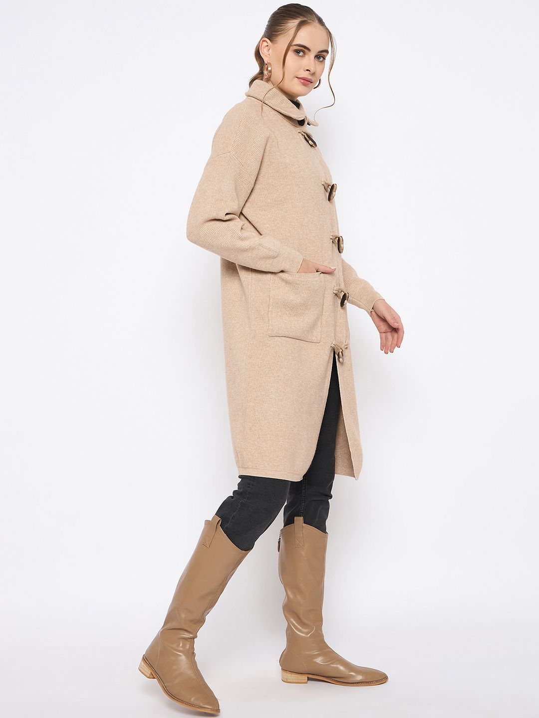 Madame Self Design Spread Collar Longline Single-Breasted Overcoat