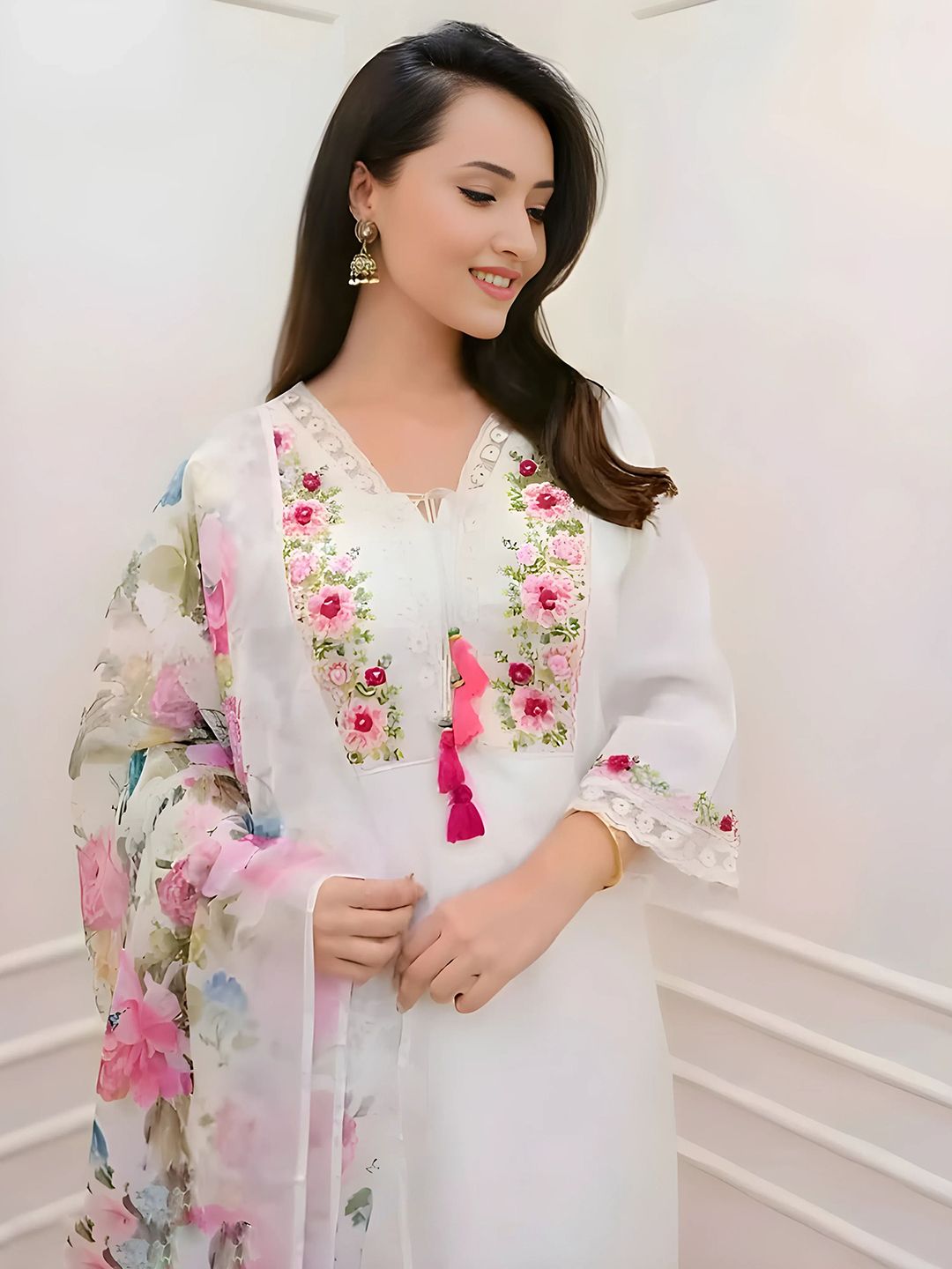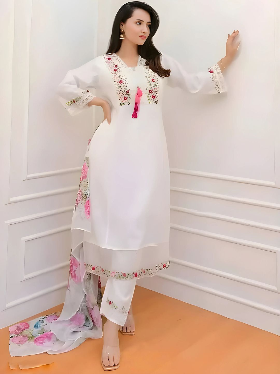 Maeswag Women Floral Embroidered Regular Kurta with Trousers & Dupatta