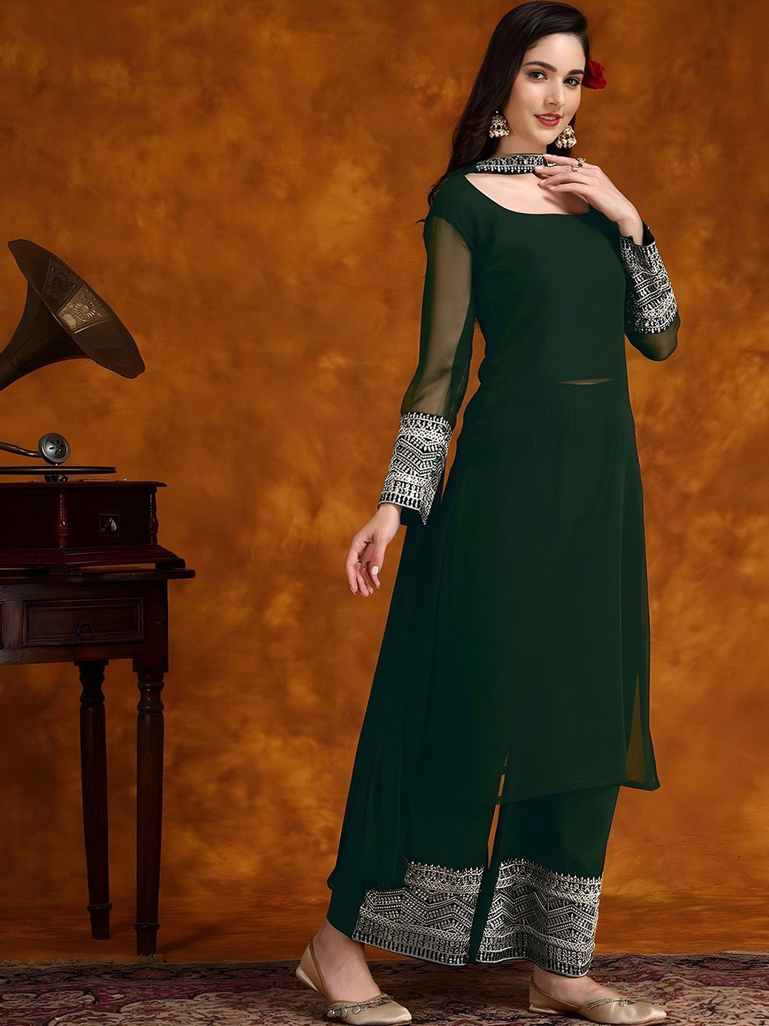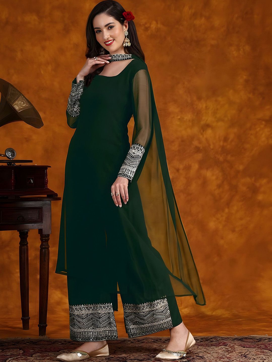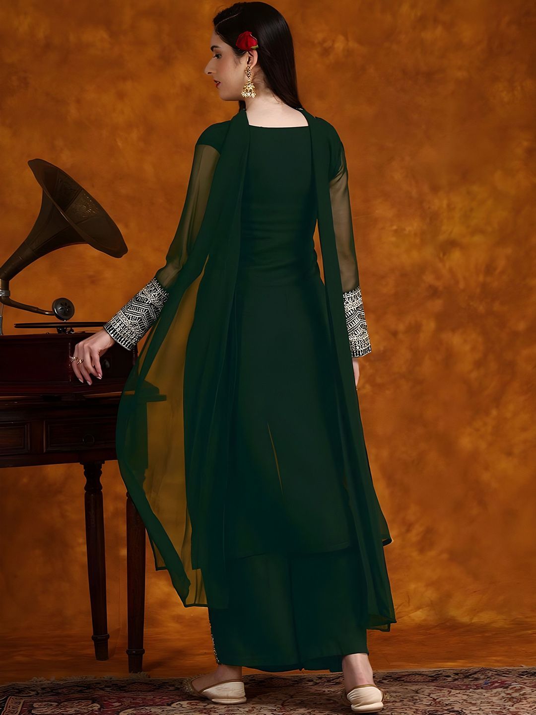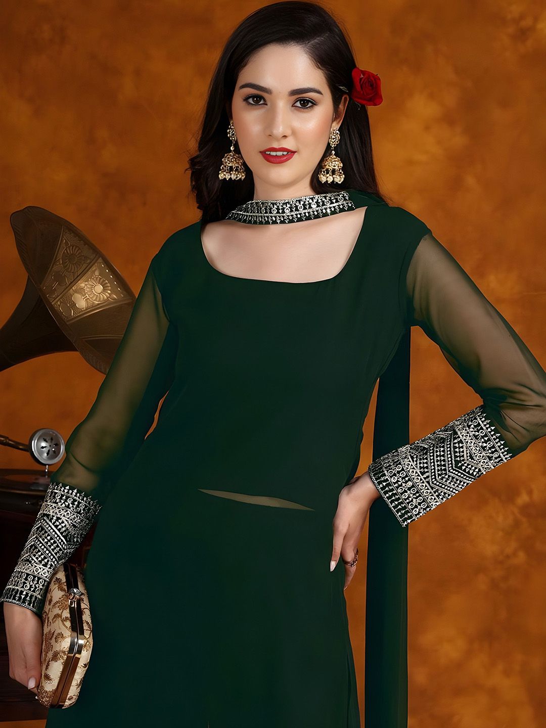 Maeswag Women Square Neck Long Sleeve Straight Georgette Kurta with Palazzos & Dupatta