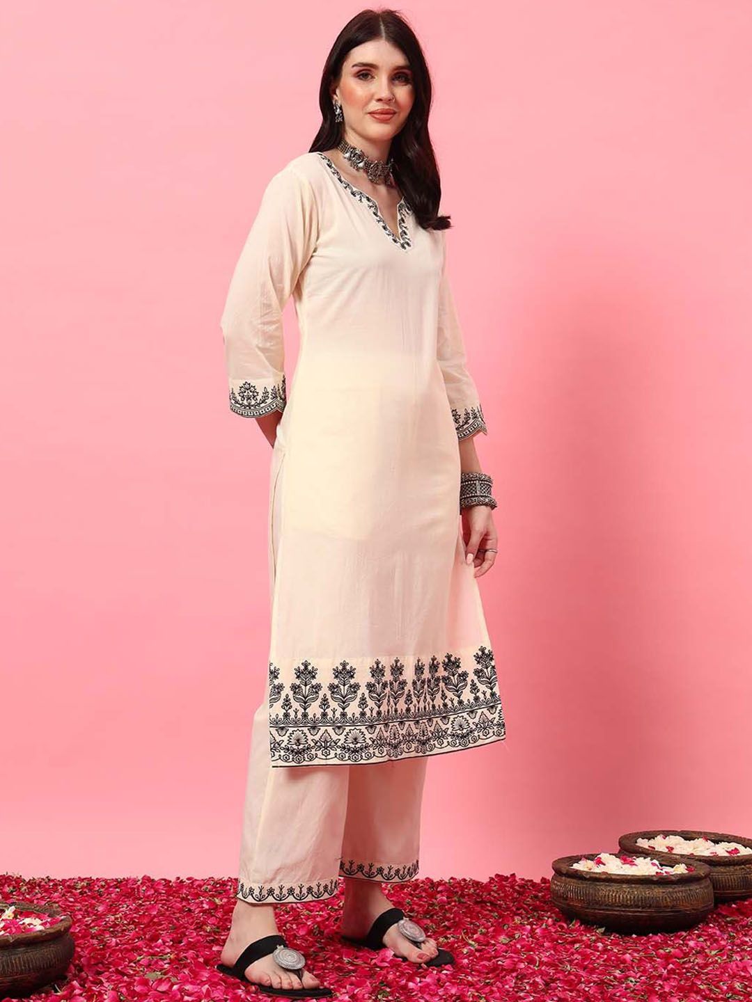 Buy this stylish MAHUKAA Women Floral Embroidered Calf Length Straight Kurta with Trousers & With Dupatta at Marincart Nepal. This product offers great quality and value. Perfect for those looking for the latest trends in fashion. Get yours now at unbeatable prices.