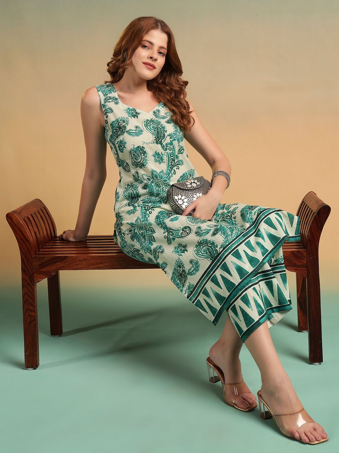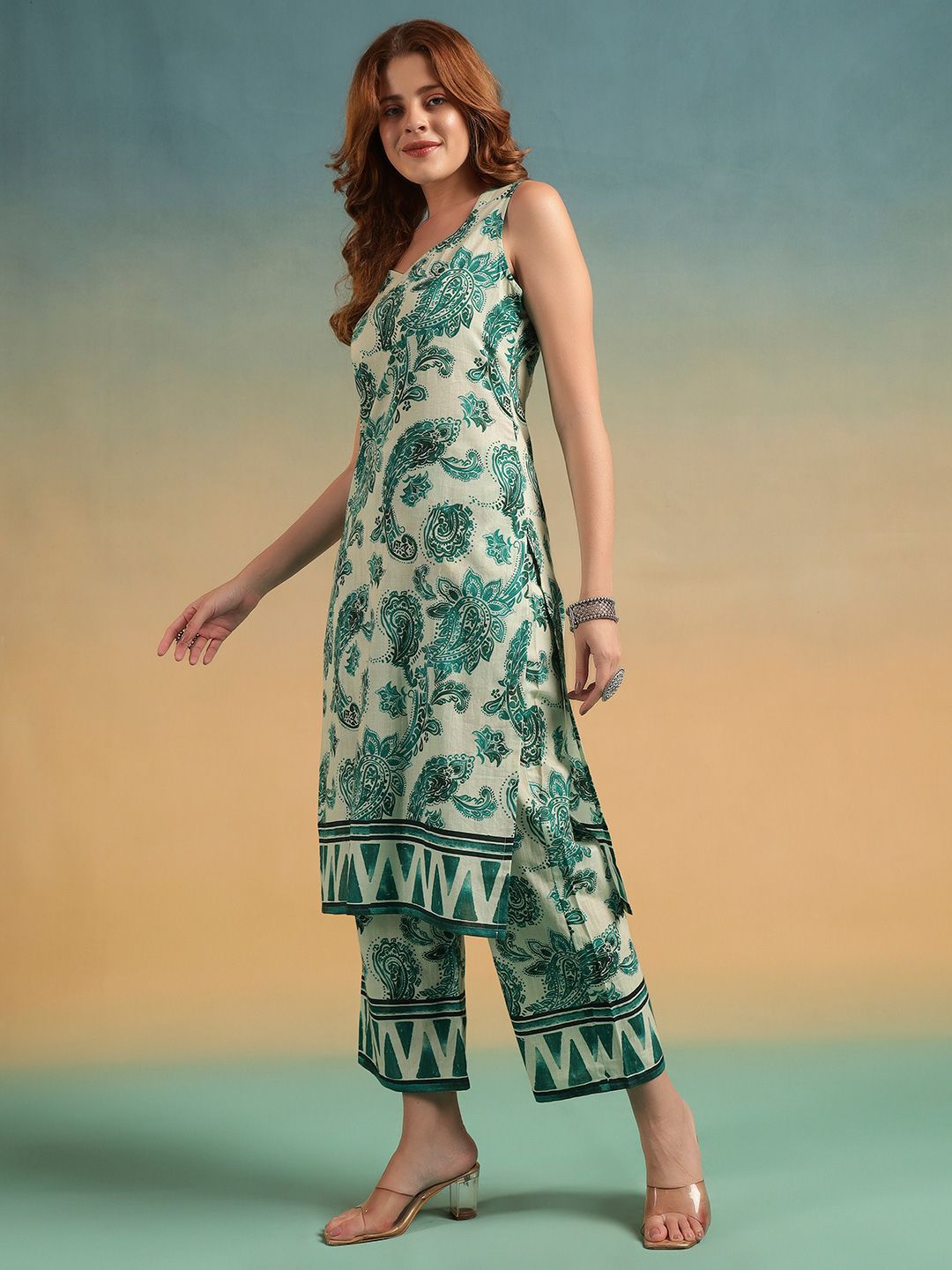 MAHUKAA Women Paisley Printed Cotton Kurta with Trousers